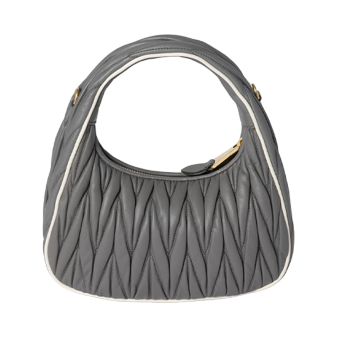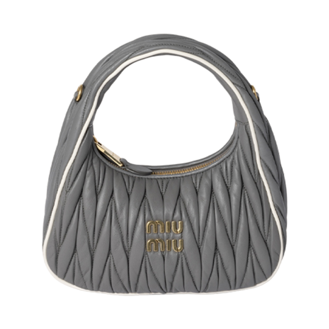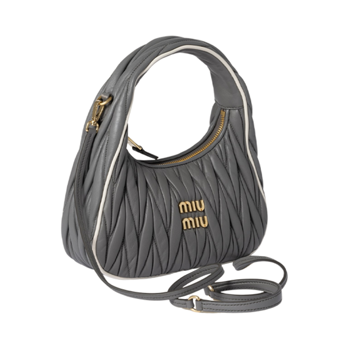 Miu Miu Wander Matelasse Nappa Leather Bag Marble Gray White
