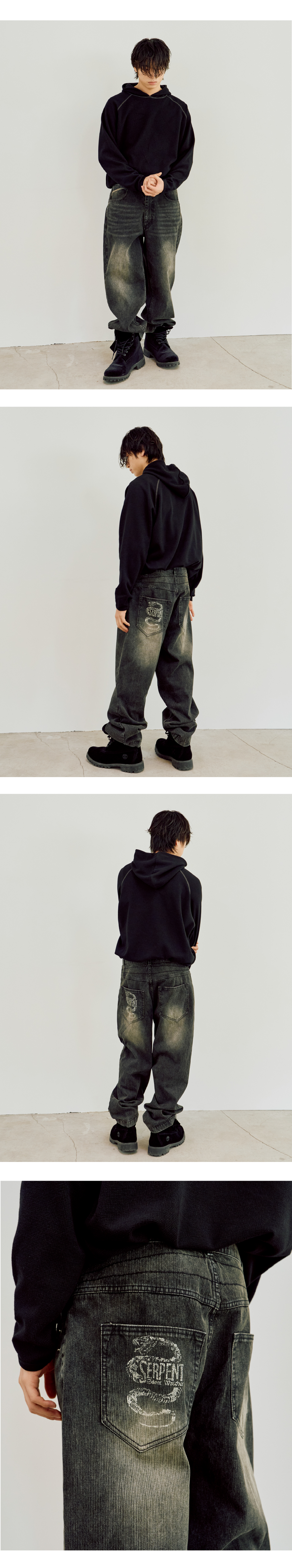 이티씨이 스네이크 본 워시드 데님 팬츠 그레이