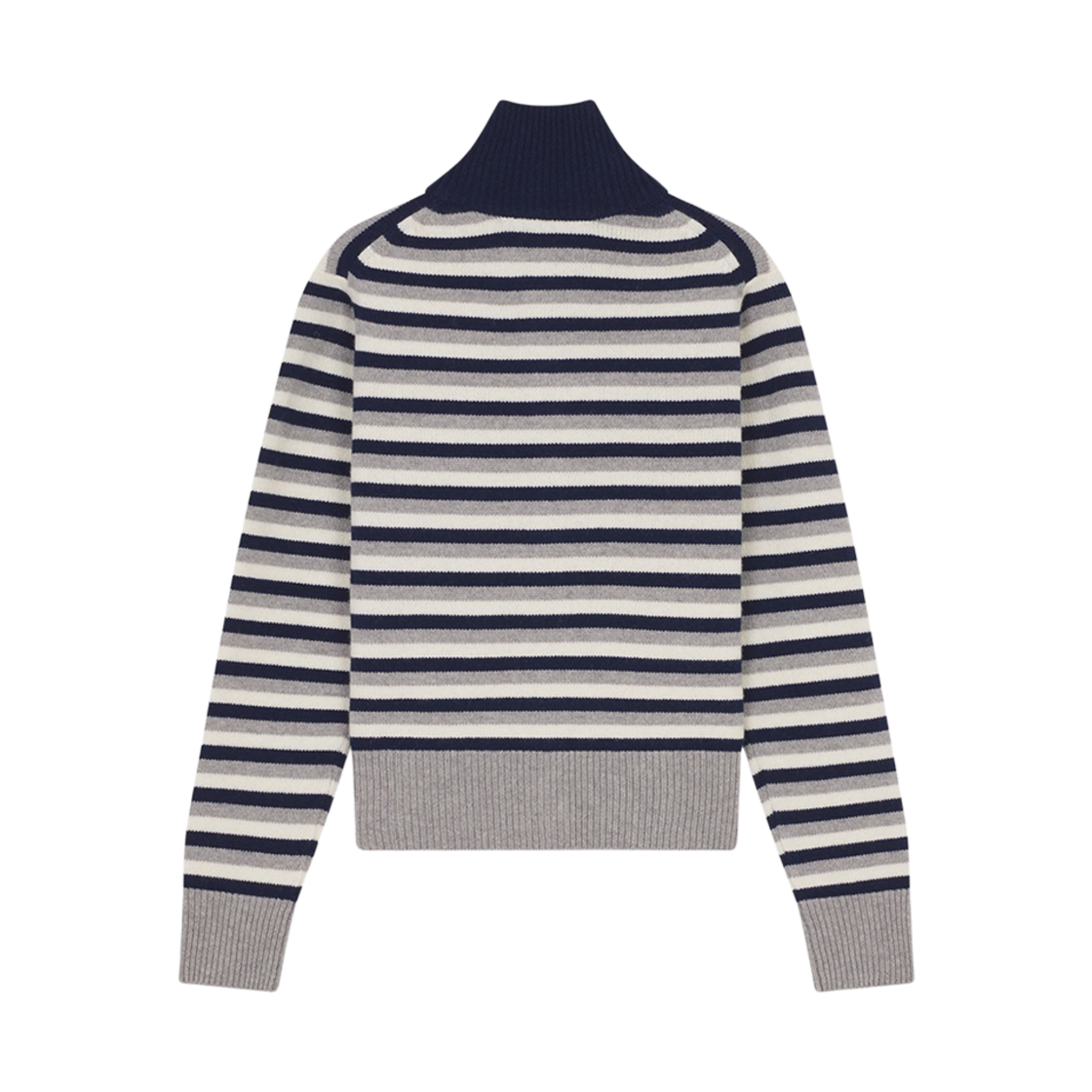 (W) 메종 키츠네 폭스 헤드 인타르시아 스트라이프 하이 넥 가디건 네이비 화이트
