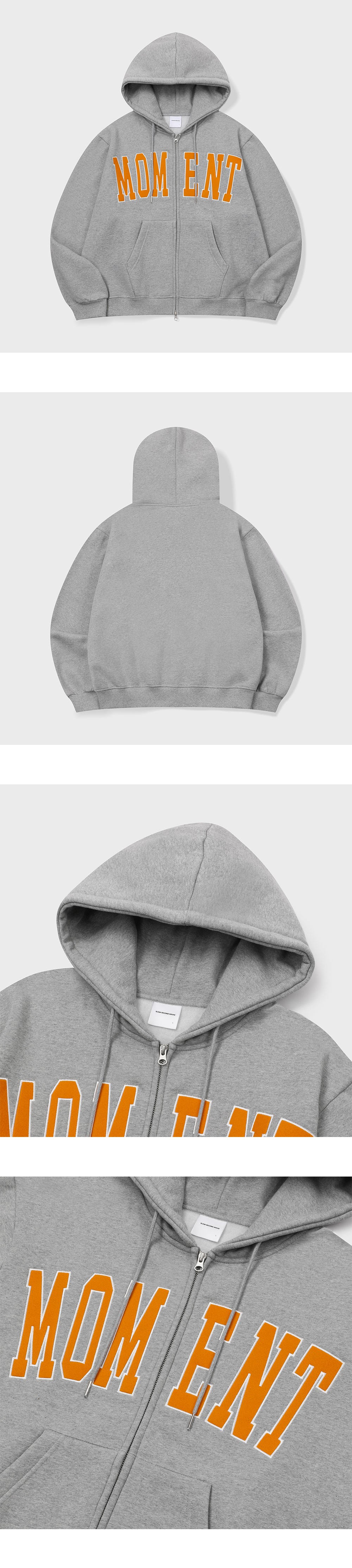 SLOW RECORD HOUSE Moment Zip-Up Hoodie Grey Orange