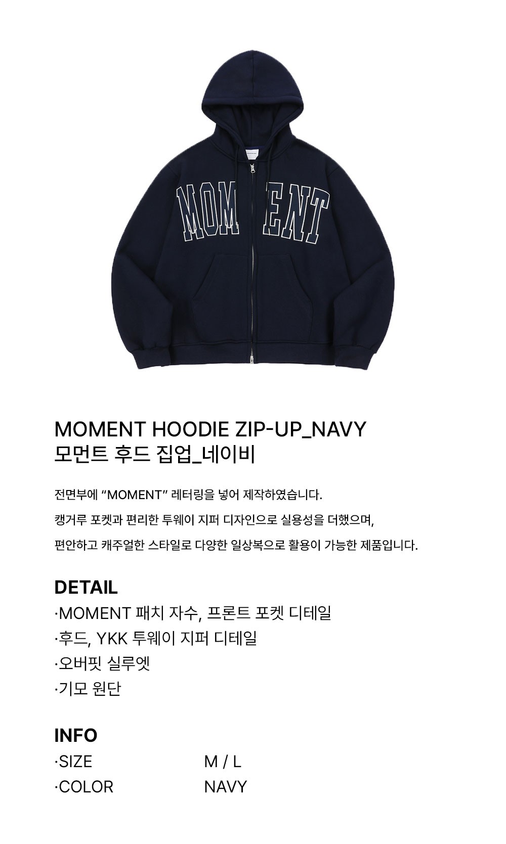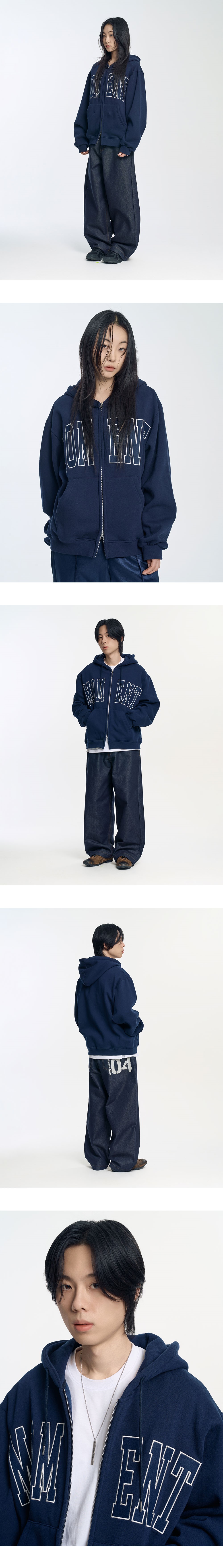 슬로우 레코드 하우스 모먼트 후드 집업 네이비