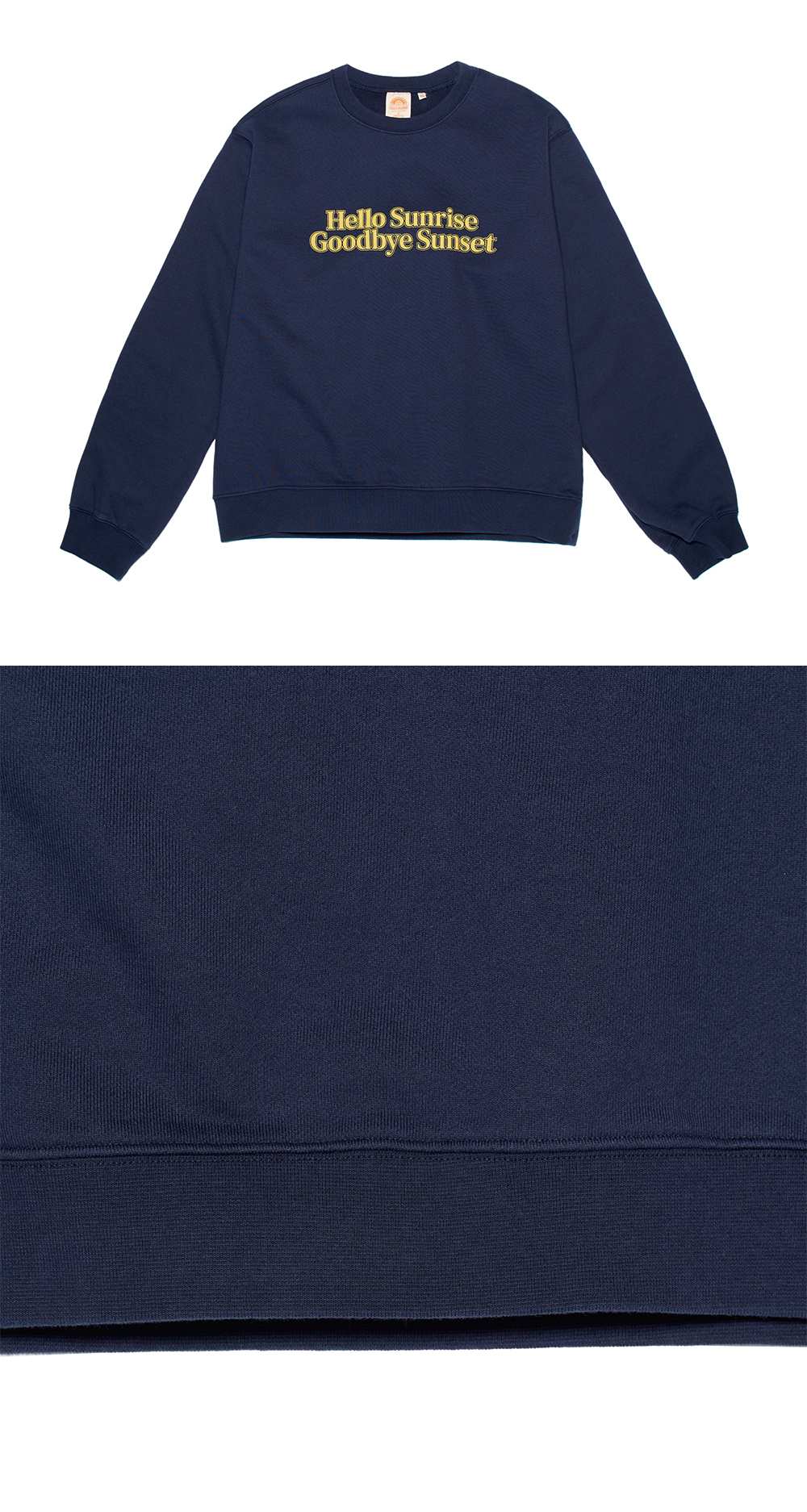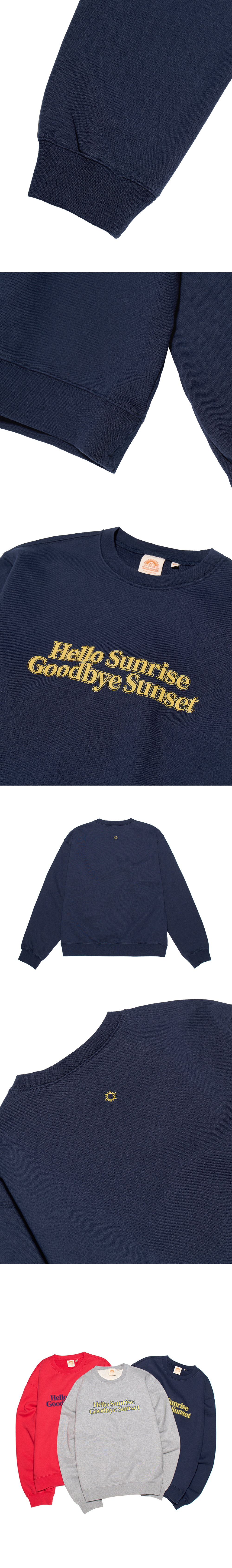 헬로선라이즈 타이포 그래픽이 들어간 스웻셔츠입니다. - 전면 헬로선라이즈 타이포 로고 그래픽 - 후면 헬로선라이즈 심볼 자수 처리 - 부드러운 원단의 터치감 - 전체 삼봉 처리하여 내구성을 높임 - 여유로운 핏의 실루엣 * Model : 174cm / Size : Medium * 측정 기준에 따라 1-2cm의 차이가 있을 수 있습니다. * Cotton 100% Made in Korea