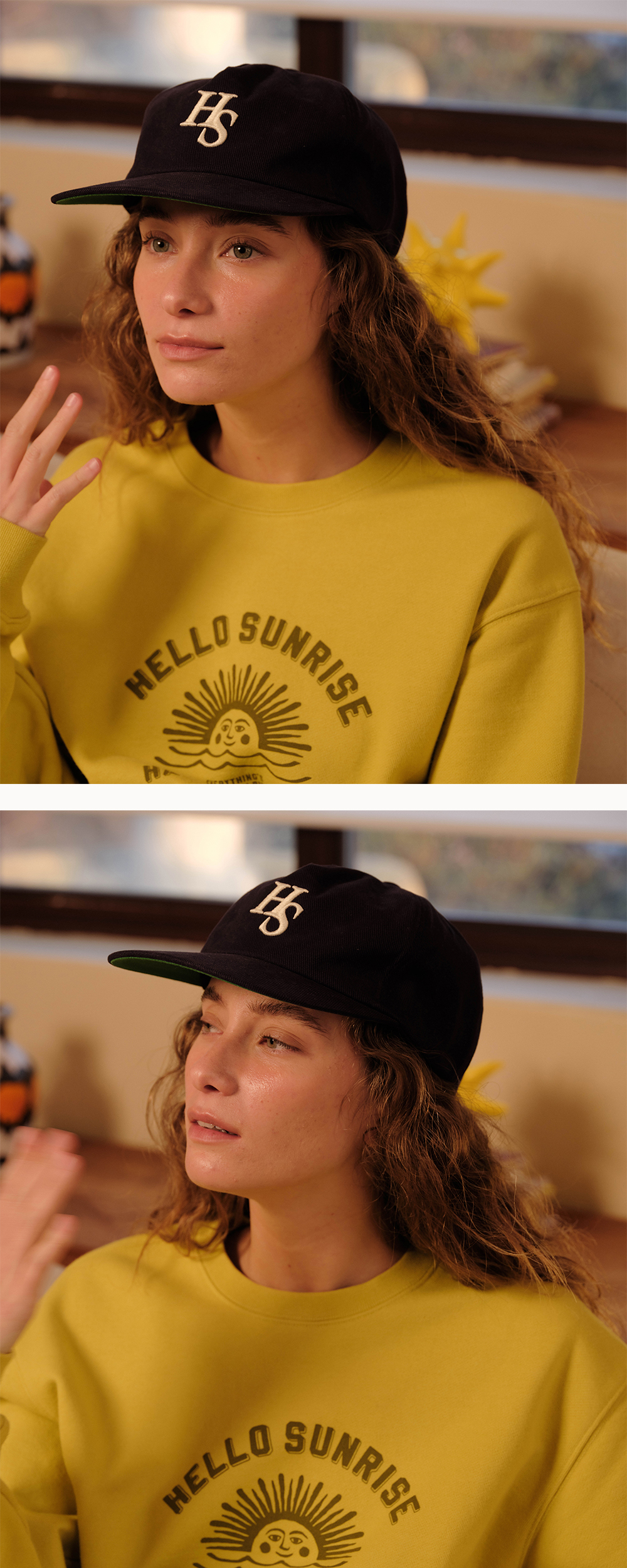 헬로선라이즈 HS 로고 그래픽이 들어간 5패널 캡입니다. - 새로운 Relaxed Fit 개발로 기존 5패널 캡보다 여유로운 착용감 - 챙 안쪽 배색 컬러 처리 - 레트로한 무드의 각진 쉐입의 제품 - 앞판 로고 엠보 자수 처리 - 뒷판 Hello Sunrise 심볼 자수 처리 - 스냅으로 사이즈 조절 가능 * 모자의 챙을 개인적인 취향에 따라 원하시는 각도로 구부려 착용하시길 권장 드립니다. * Cotton 100% Made in Korea