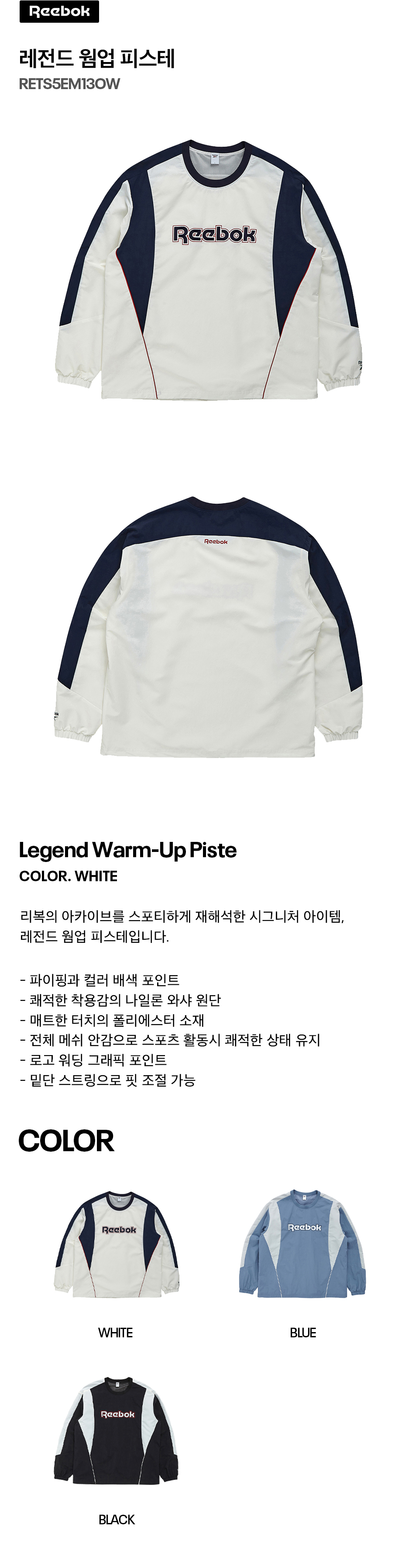 리복 레전드 웜업 피스테 화이트