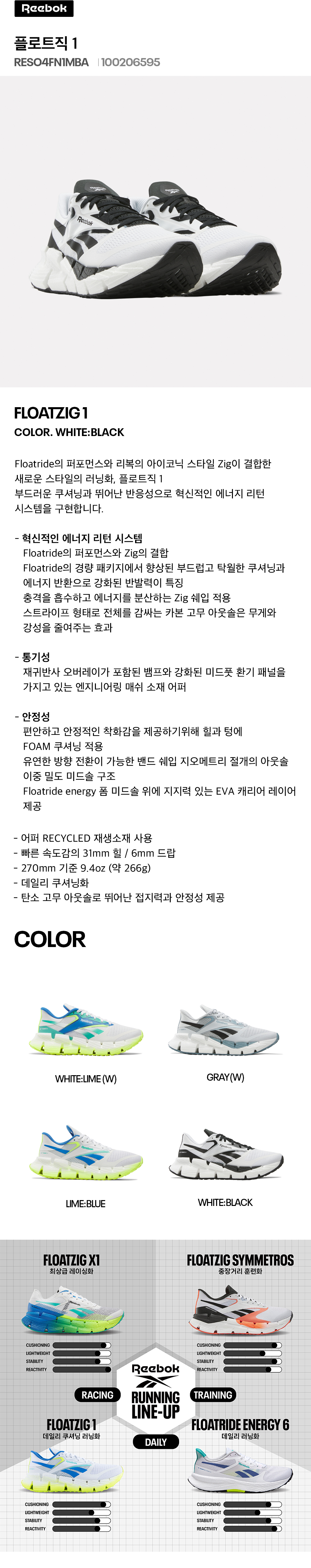 리복 플로트직 1 화이트 블랙