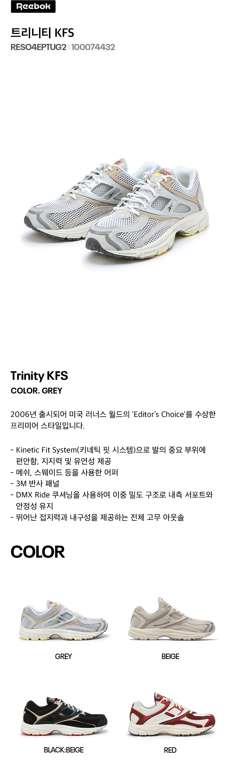 리복 트리니티 KFS 그레이