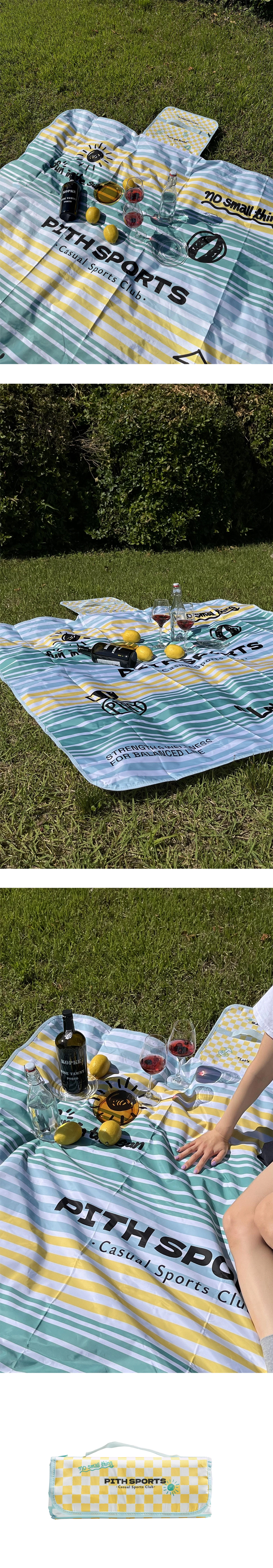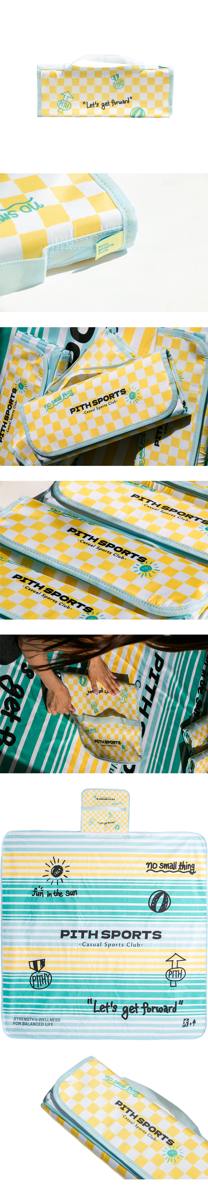 잔디나 해변가에서 피크닉이나 일광욕을 즐길 수 있는 매트입니다. 2-3명이 앉을 수 있도록 제작 되었습니다. 벨크로 디자인으로 접어서 작은 가방 형태로 보관 및 휴대가 편리합니다. PVC 코팅 처리가 되어 있어 바닥의 습기를 차단하고 세척이 쉽습니다.
