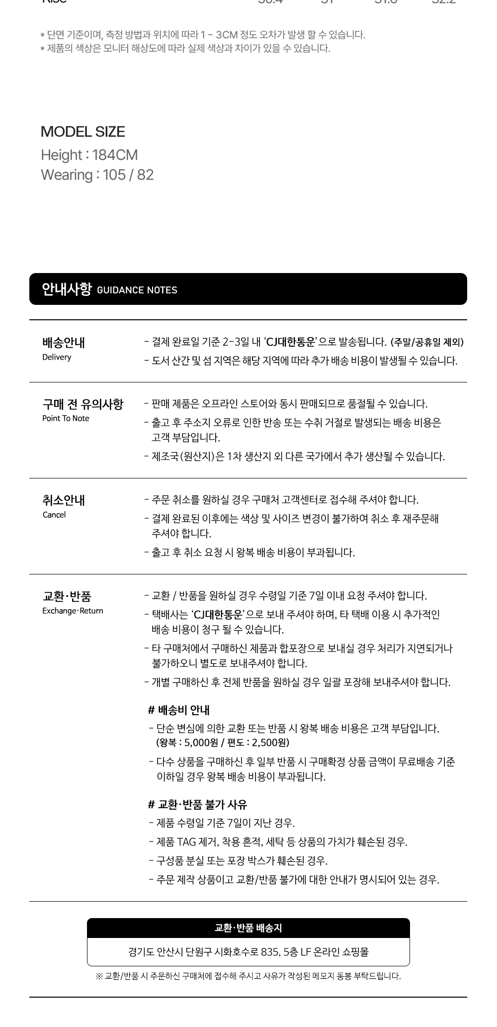 교환 및 반품 안내