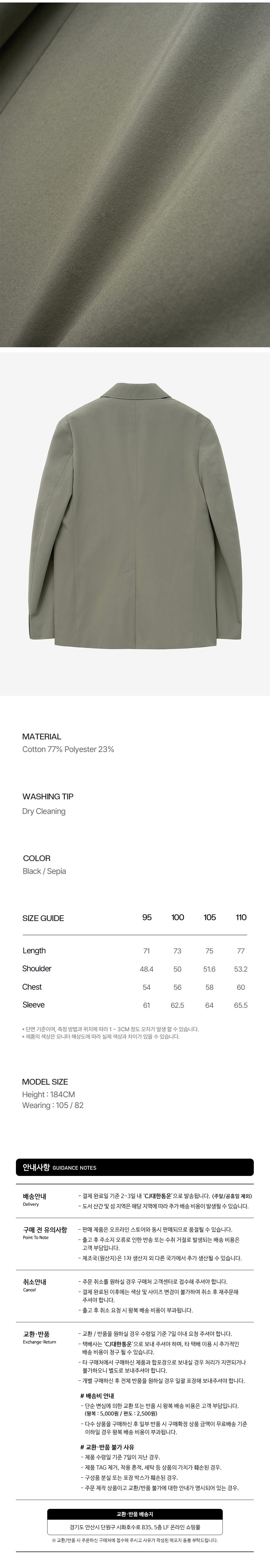 티엔지티 세피아 3버튼 코튼 테일러드 셋업 자켓