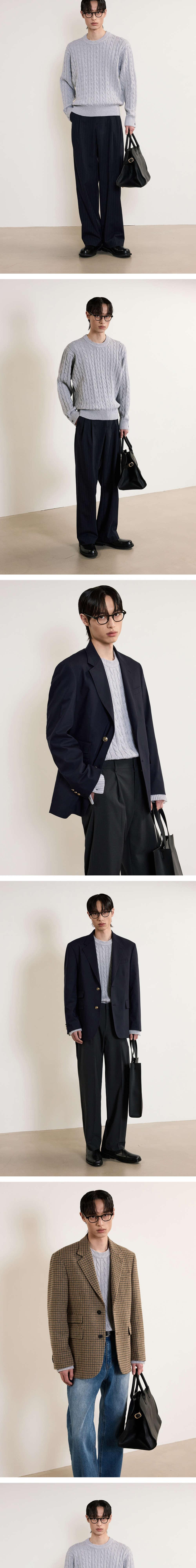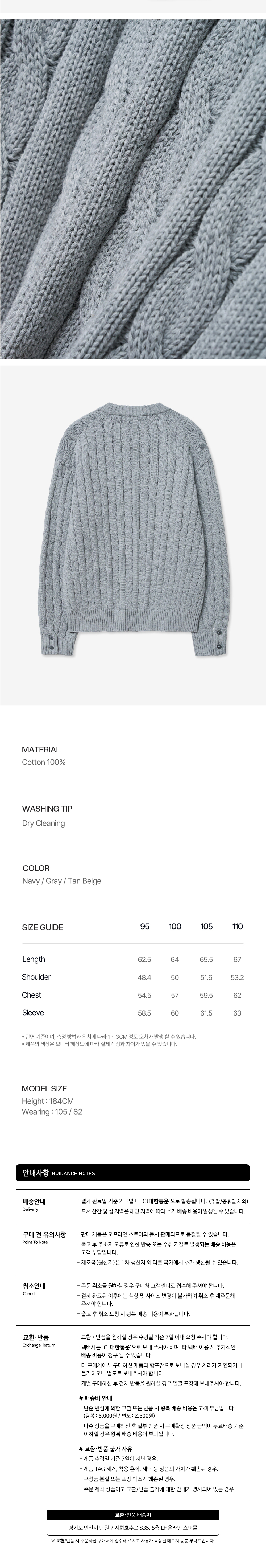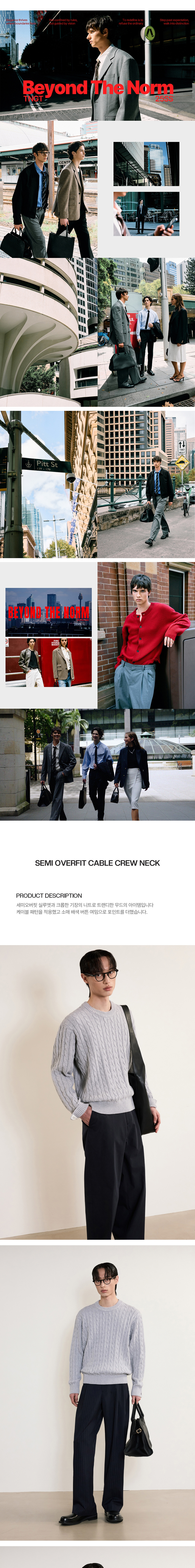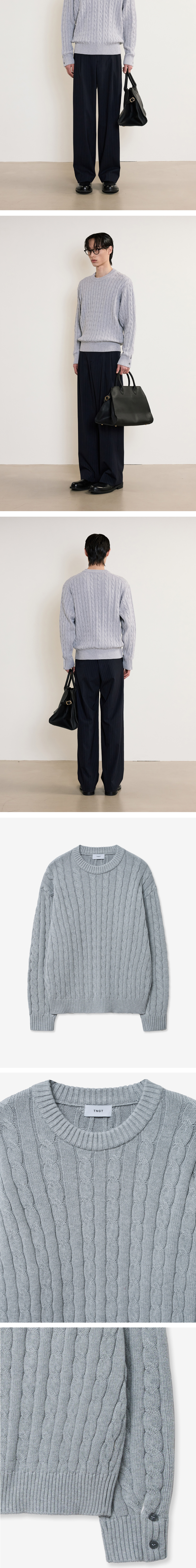 티엔지티 그레이 세미 오버핏 케이블 크루넥 스웨터