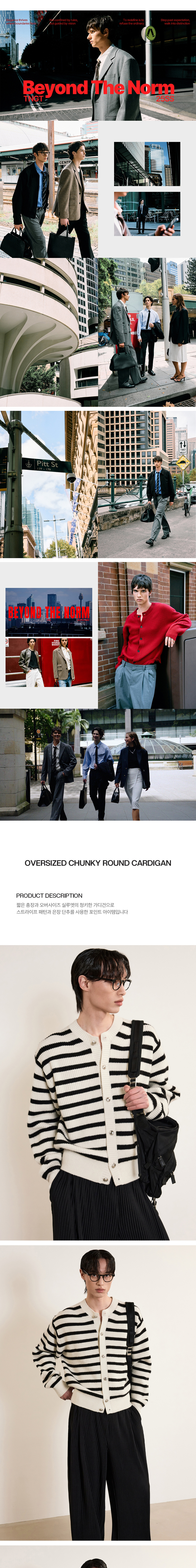 티엔지티 아이보리 오버사이즈 청키 라운드 가디건