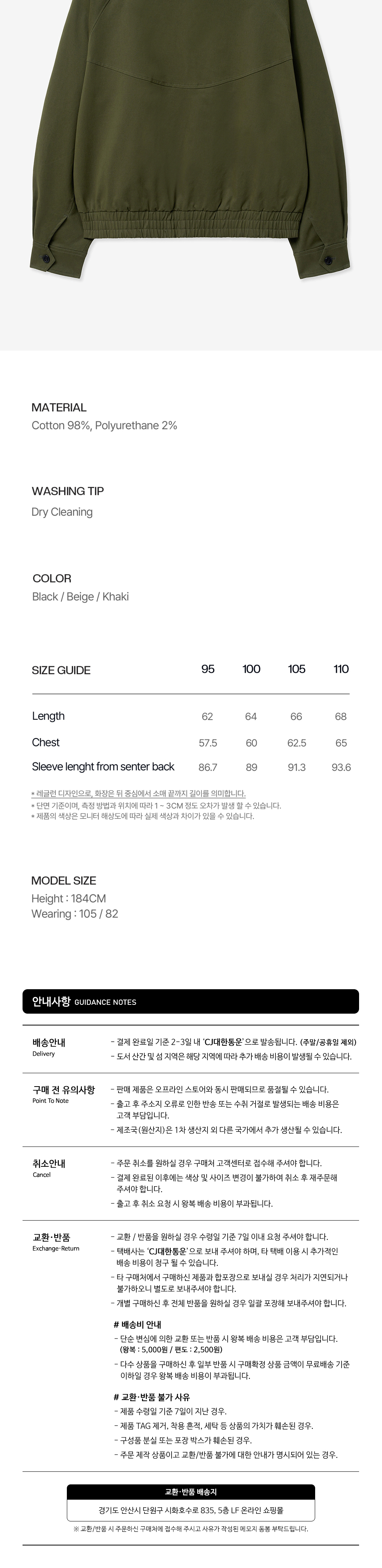티엔지티 카키 세미 오버핏 워시드 코튼 블루종