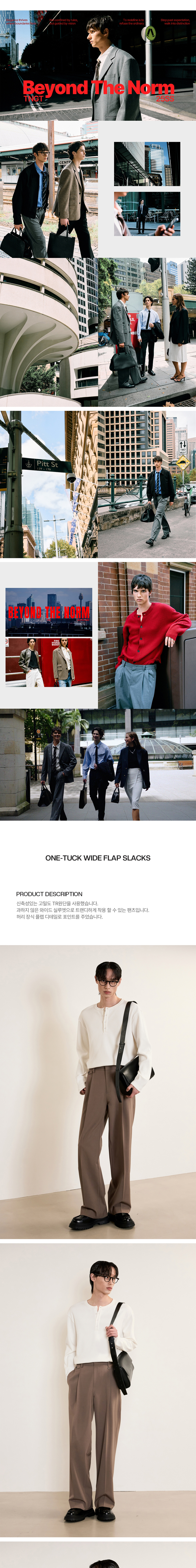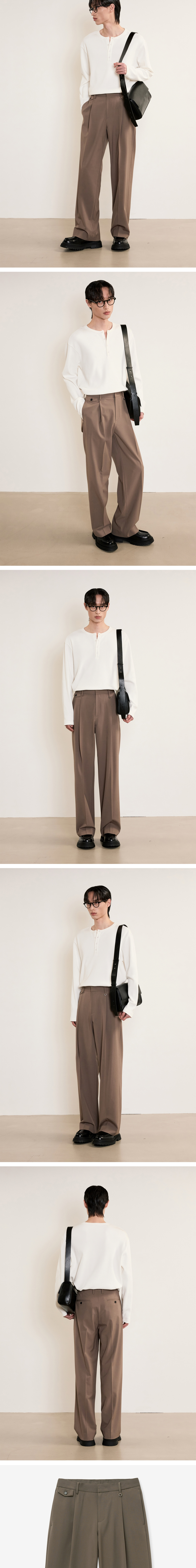 티엔지티 더스티베이지 원턱 와이드 플랩 슬랙스