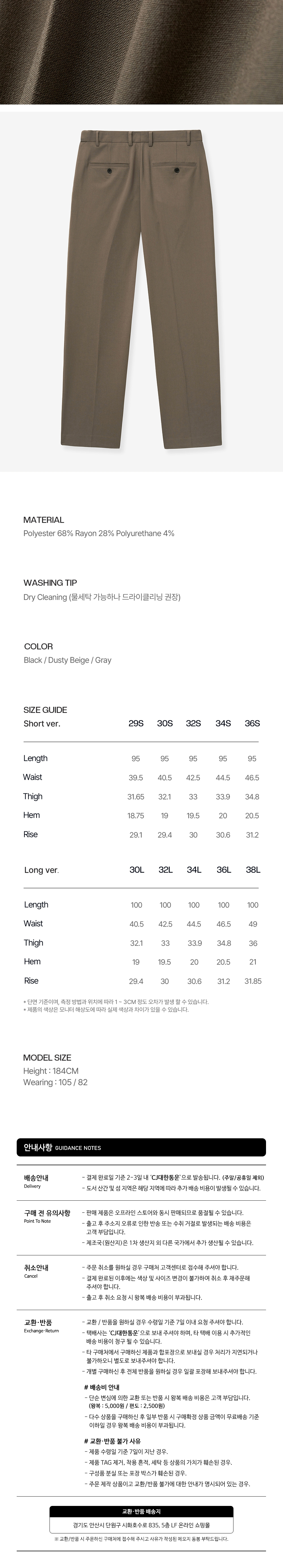 티엔지티 더스티베이지 테이퍼드핏 히든밴딩 슬랙스