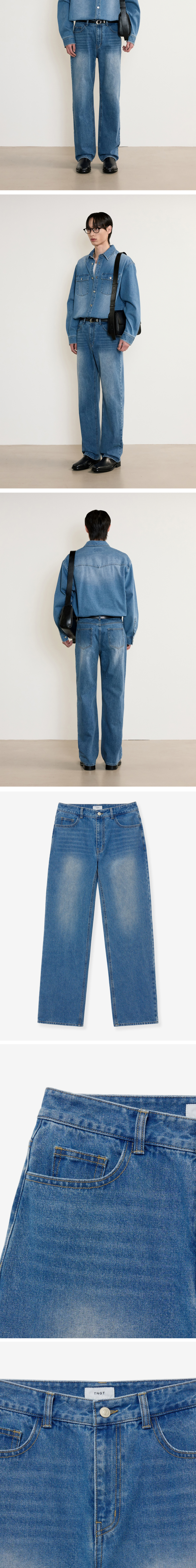 티엔지티 빈티지블루 세미 와이드 스트레이트핏 데님 팬츠