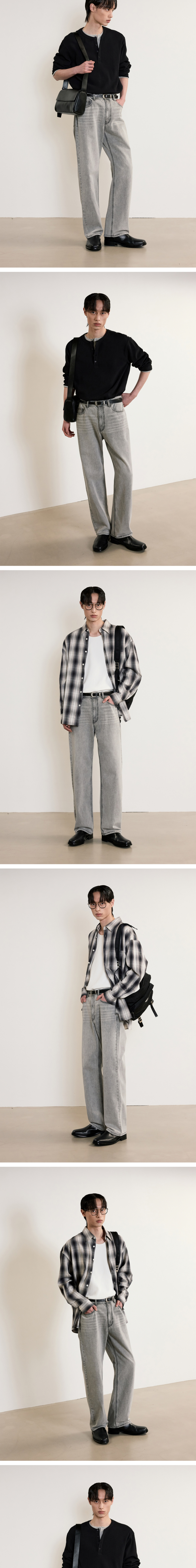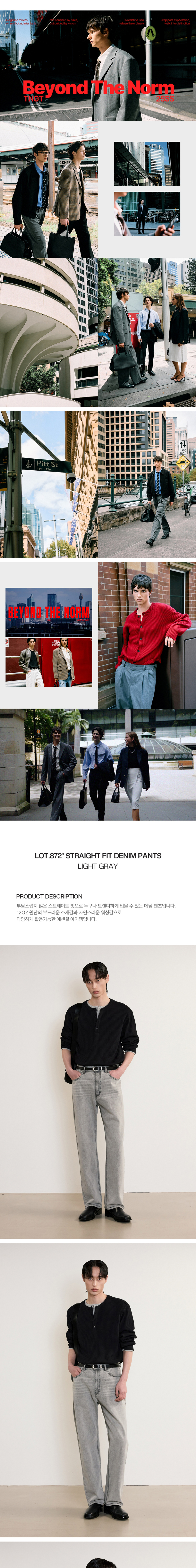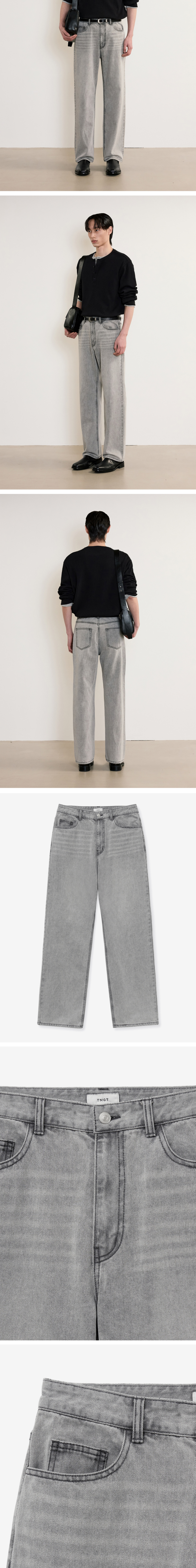 티엔지티 라이트그레이 세미 와이드 스트레이트핏 데님 팬츠