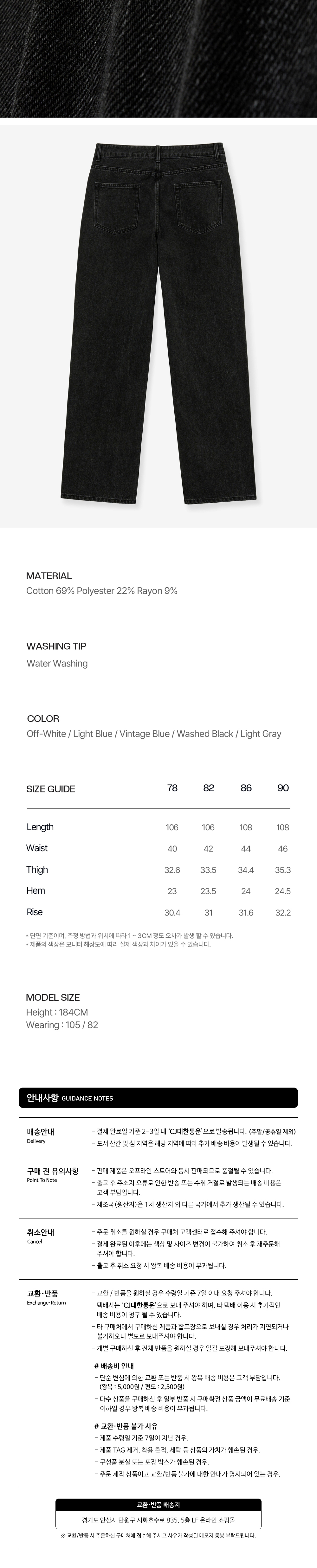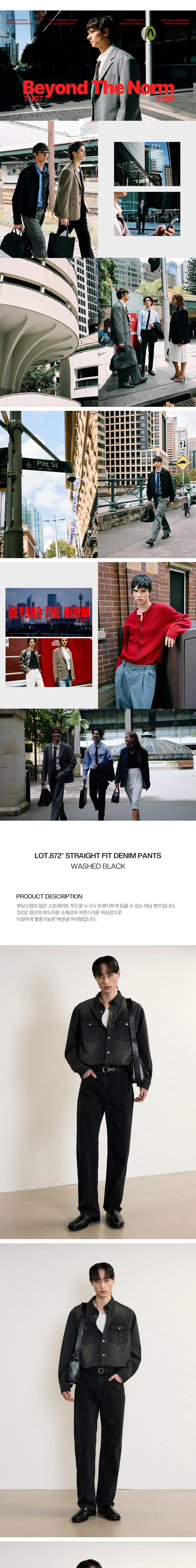티엔지티 워시드블랙 세미 와이드 스트레이트핏 데님 팬츠