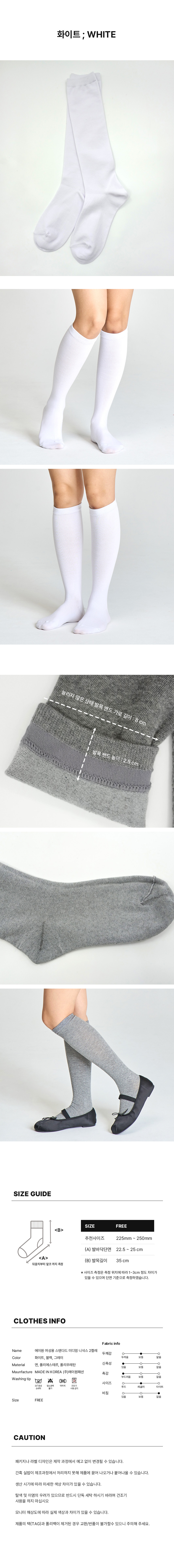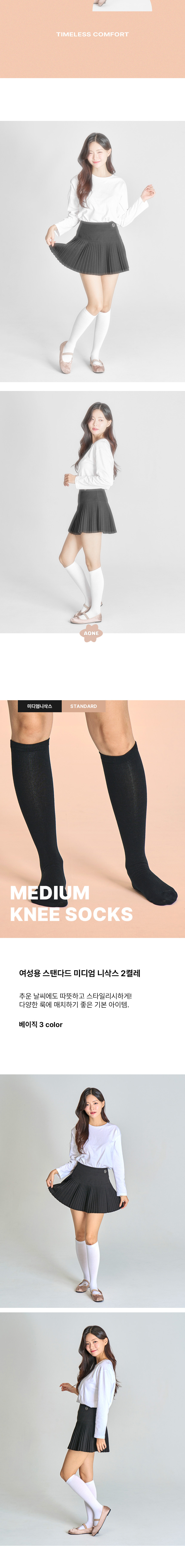 [3% 적립] (W) Aone Standard Medium Knee Socks 2-Pack White