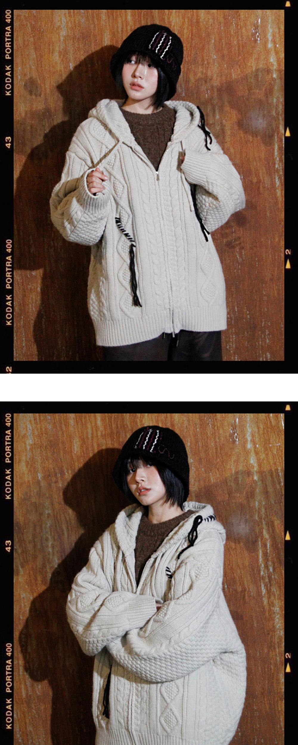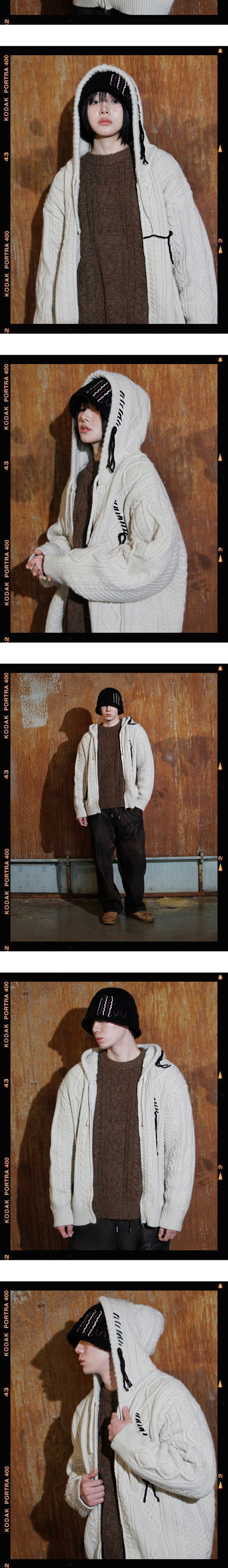 더그레이티스트 케이블 니트후드집업 베이지