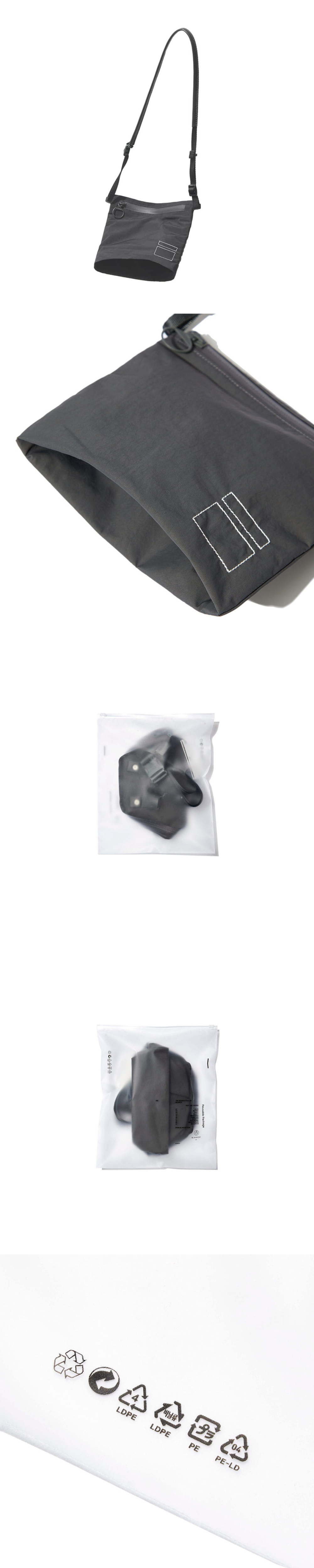 스마트폰, 지갑, 에어팟 등 개인이 필수로 들고 다니는 개인용품을 휴대하기에 적합한 샤코슈백 입니다. 원단은 수년간 연구로 직접 개발하여 제작한 ROOTSCOPE® GIM 는 솔라 트윌 조직의 나일론 원단으로 바스락 거리는 터치감과 가볍지만 견고한 것이 특징입니다. DWR 가공과 래미네이팅 후가공된 3 Layer 원단 및 YKK® AquaGuard 지퍼를 사용하여 생활 발수 및 방수에 알맞게 제작되었습니다.