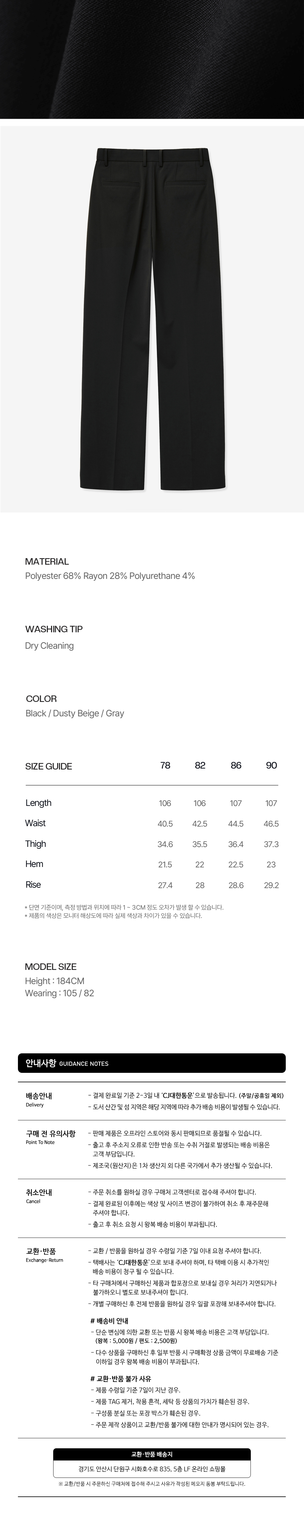 티엔지티 블랙 원턱 세미 와이드 셋업 슬랙스