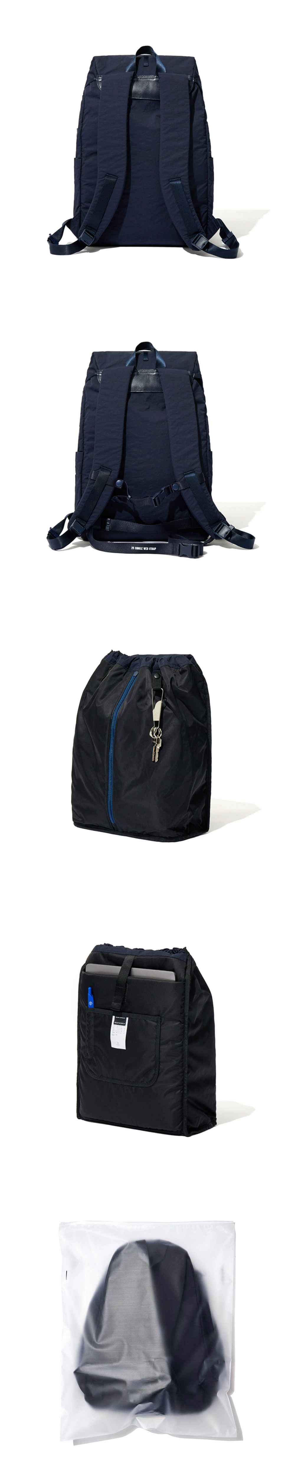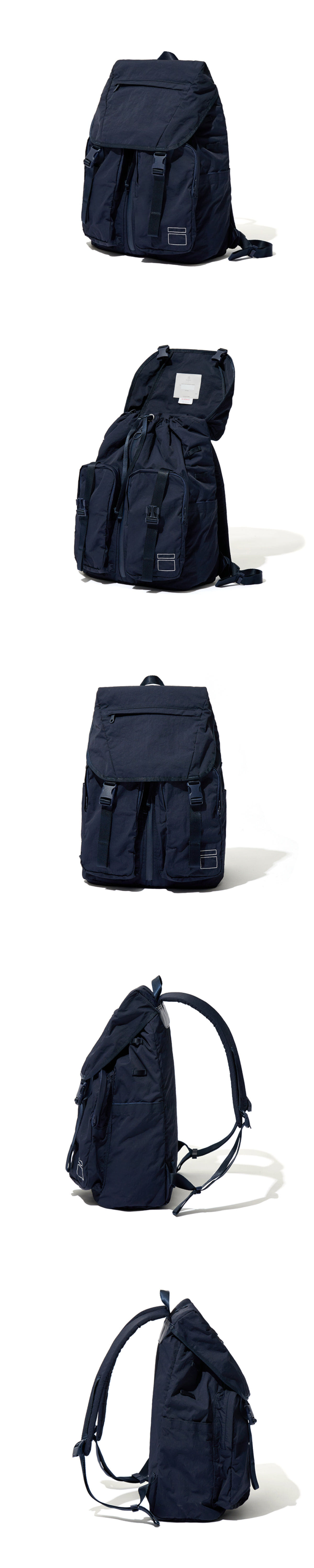 가방 내부에는 전자기기를 안전하게 수납한 패드 주머니와 작은 파우치, 모자 등을 걸어서 보관할 수 있도록 상단 고리를 더했습니다. 원단은 수년간 연구로 직접 개발하여 제작한 ROOTSCOPE® GIM 는 솔라 트윌 조직의 나일론 원단으로 바스락 거리는 터치감과 가볍지만 견고한 것이 특징입니다. DWR 가공과 래미네이팅 후가공된 3 Layer 원단 및 YKK® AquaGuard 지퍼를 사용하여 생활 발수 및 방수에 알맞게 제작되었습니다. * 가방이 무거워져도 견고함을 더해주는 체스트 스트랩과 싱글 웹 스트랩 제품과 같이 사용할 수 있습니다. (별도 구매)