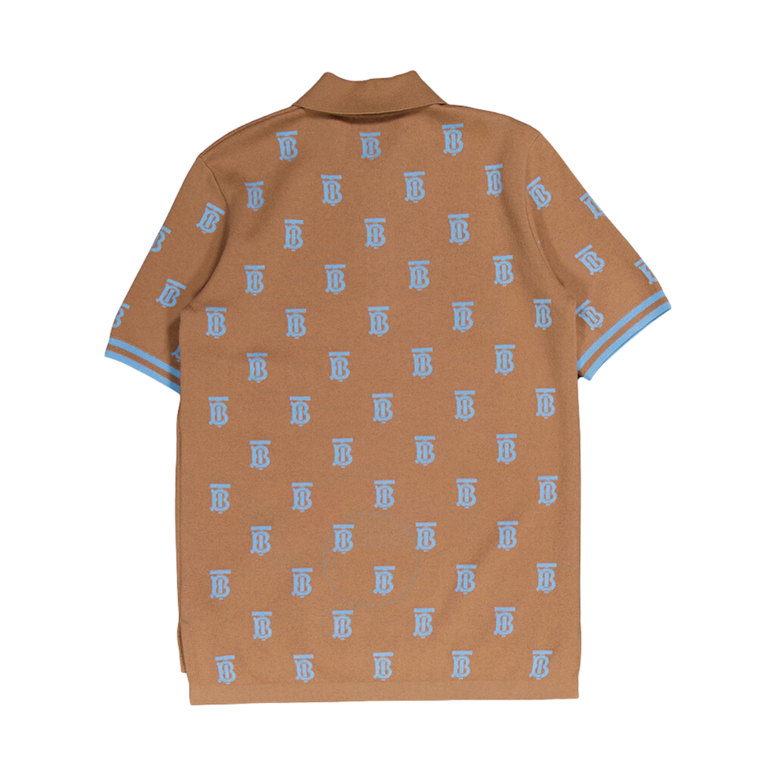 (W) Burberry Monogram Wool Silk Blend Knitted Polo Shirt Camel