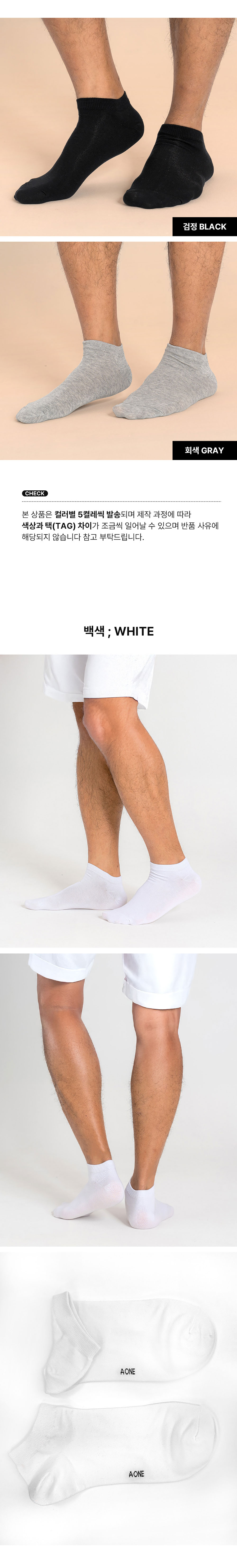 [3% 적립] 에이원 미니멀 무지 스니커즈 양말 5팩 검정