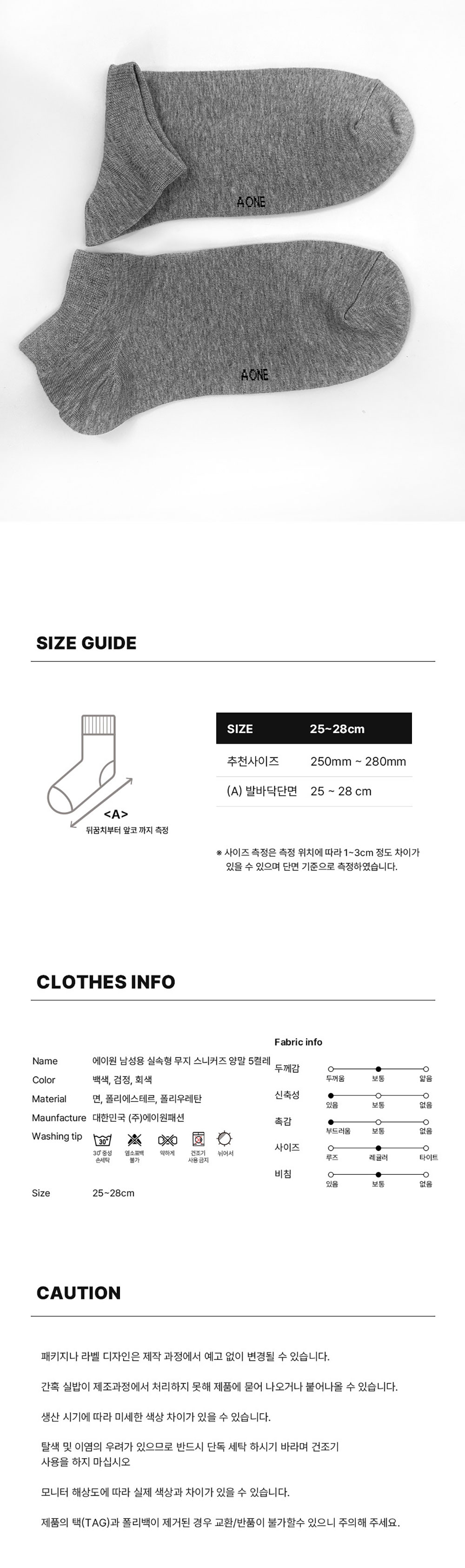 [3% 적립] 에이원 미니멀 무지 스니커즈 양말 5팩 백색
