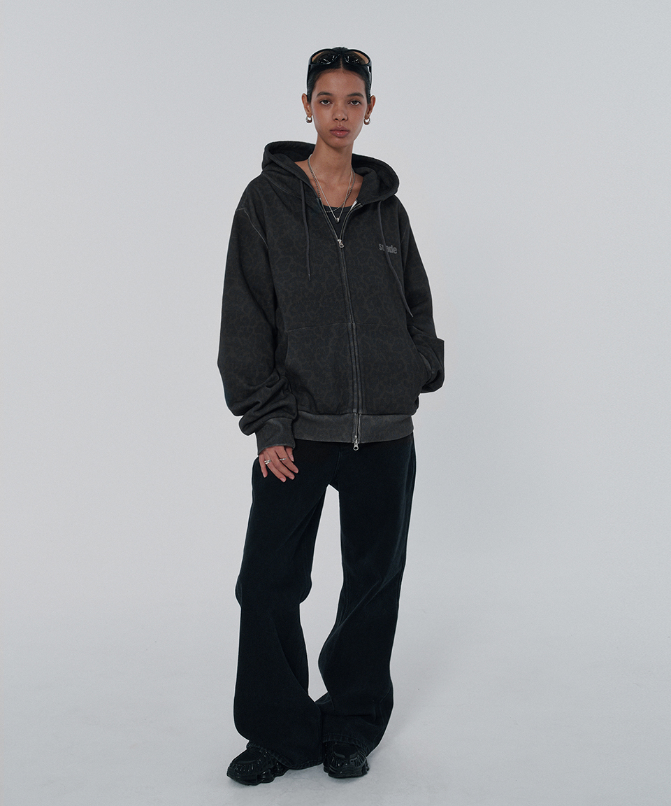 스웨이드 다크 레오파드 후드 집업 레오파드