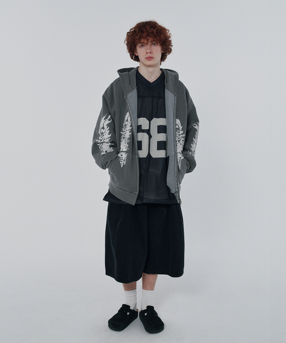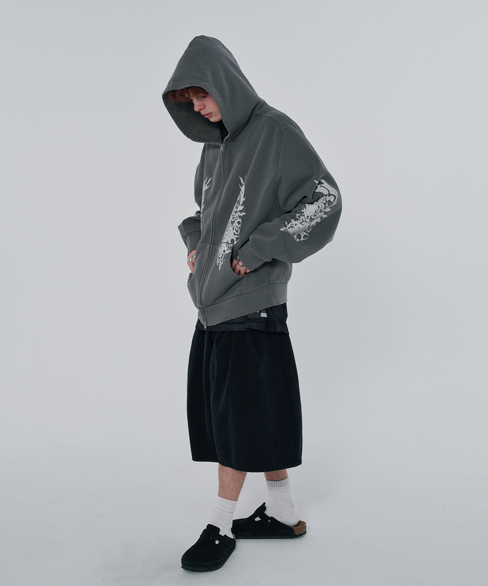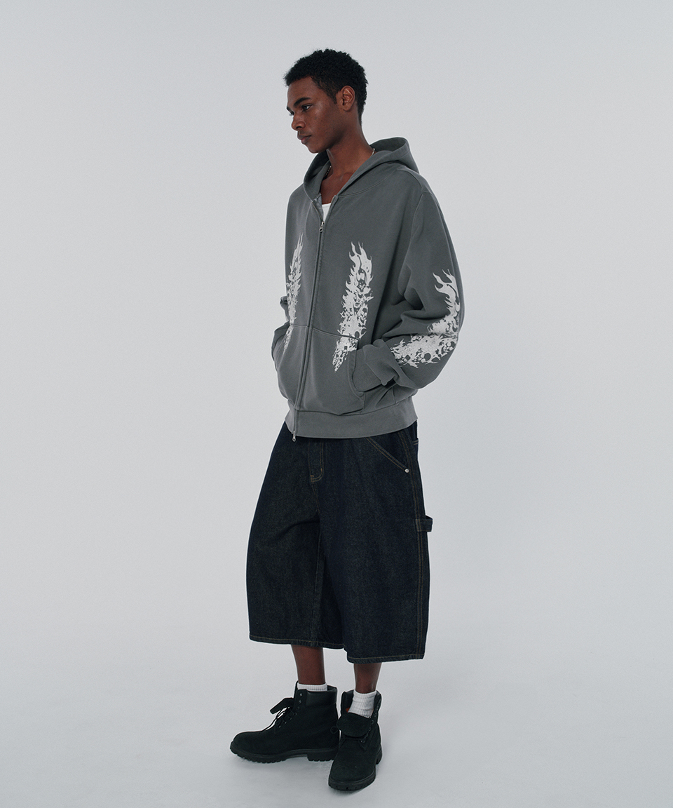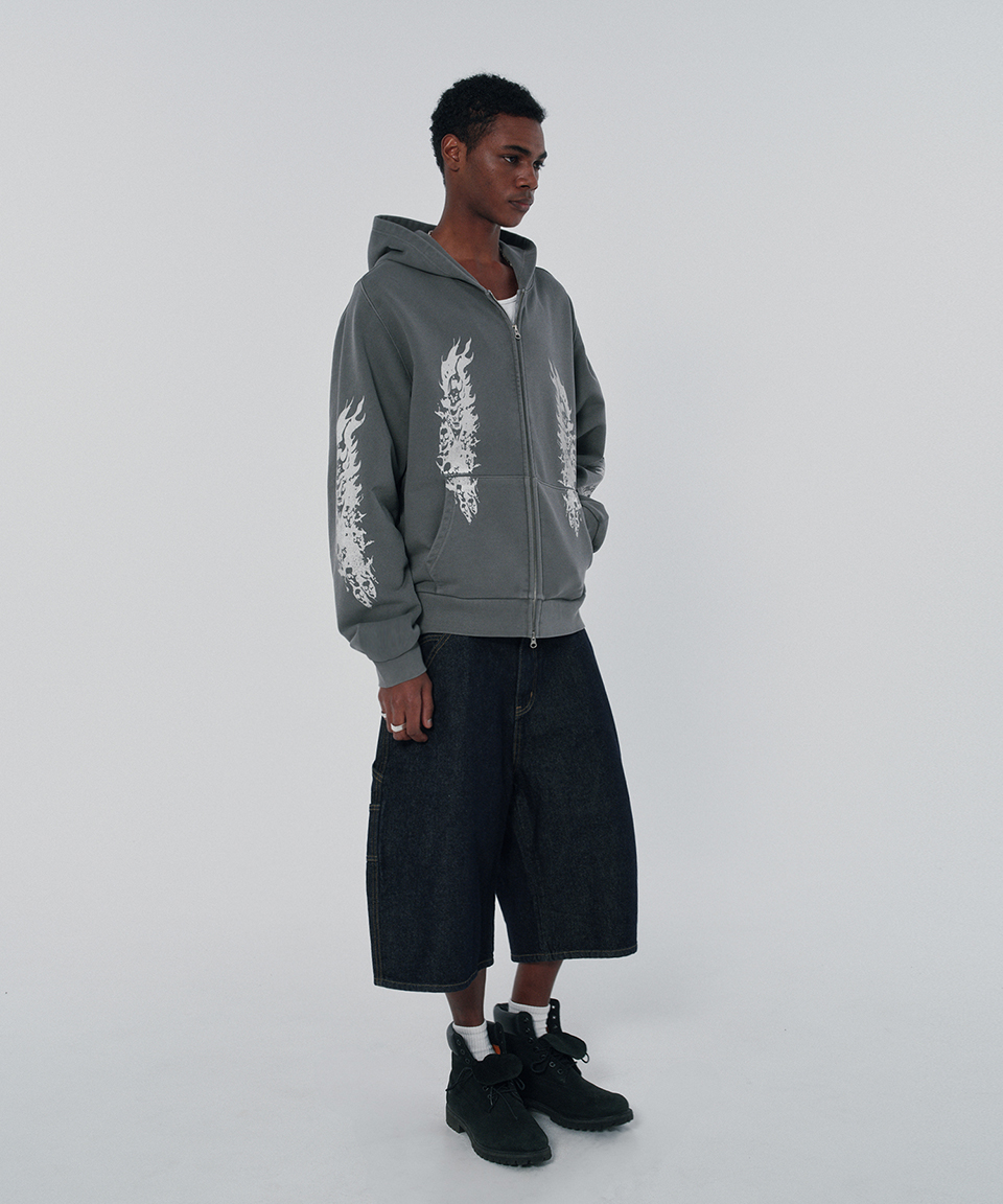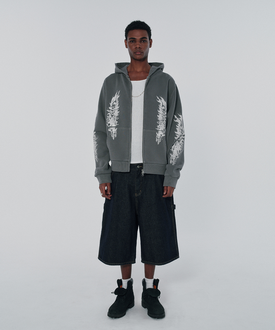 스웨이드 파이어 스컬 후드 집업 피그먼트 그레이