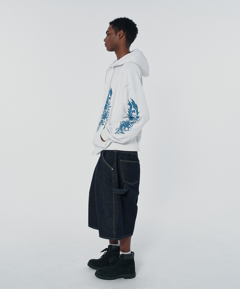 스웨이드 파이어 스컬 후드 집업 화이트