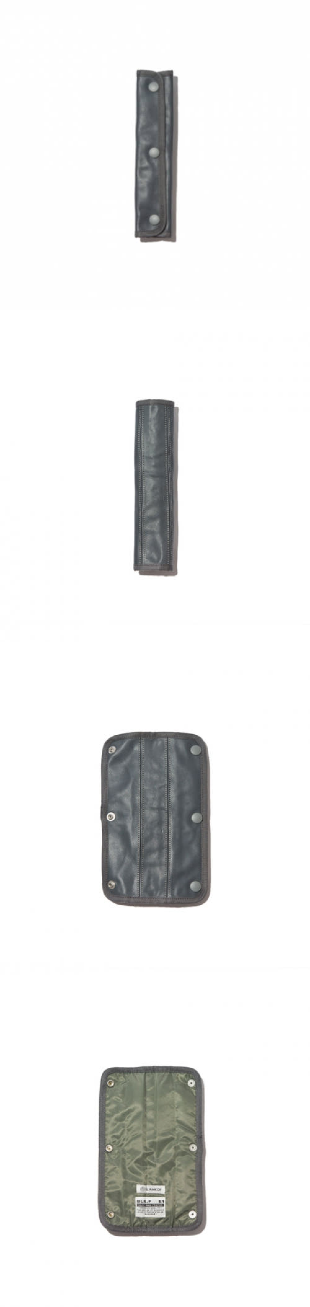 헬멧백, 메일백, 에이프런백 등의 모두 사용할 수 있는 가죽, 충전재, 나일론으로 제작된 어깨패드입니다. 외부가 모두 가죽으로 제작되었으며 3개의 스냅버튼이 잠금장치의 역할을 하고 있습니다.