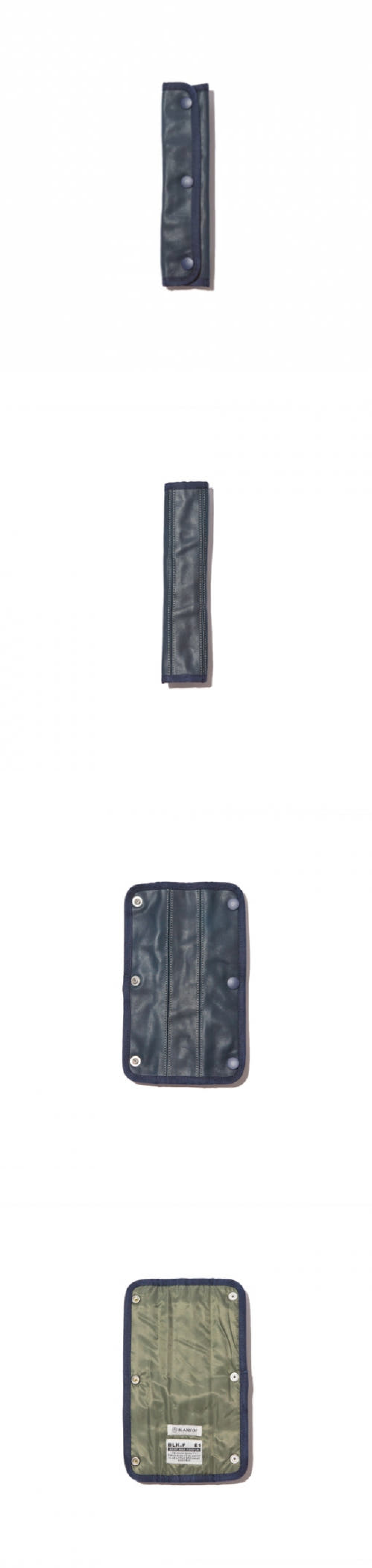 헬멧백, 메일백, 에이프런백 등의 모두 사용할 수 있는 가죽, 충전재, 나일론으로 제작된 어깨패드입니다. 외부가 모두 가죽으로 제작되었으며 3개의 스냅버튼이 잠금장치의 역할을 하고 있습니다.