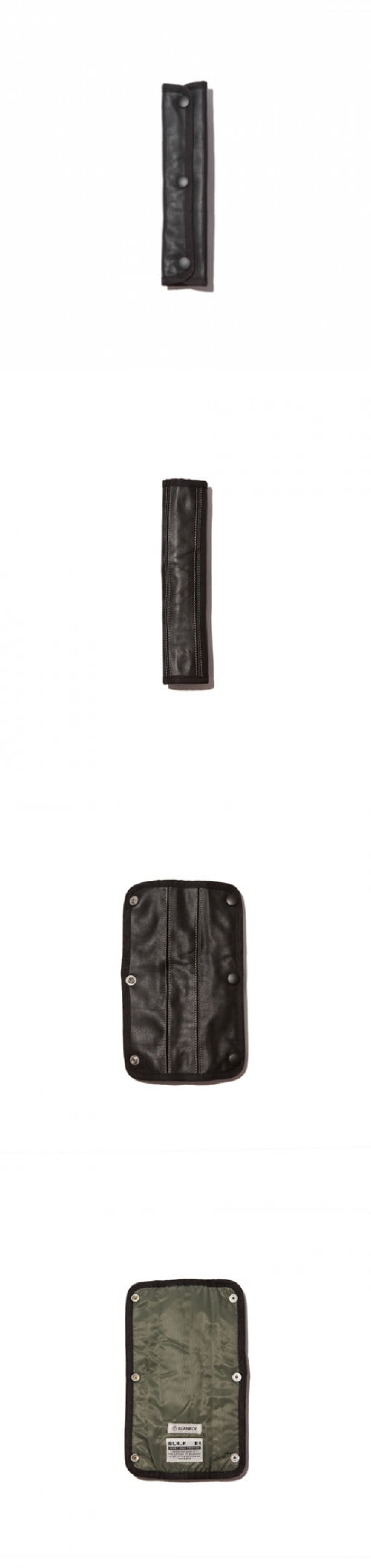 헬멧백, 메일백, 에이프런백 등의 모두 사용할 수 있는 가죽, 충전재, 나일론으로 제작된 어깨패드입니다. 외부가 모두 가죽으로 제작되었으며 3개의 스냅버튼이 잠금장치의 역할을 하고 있습니다.