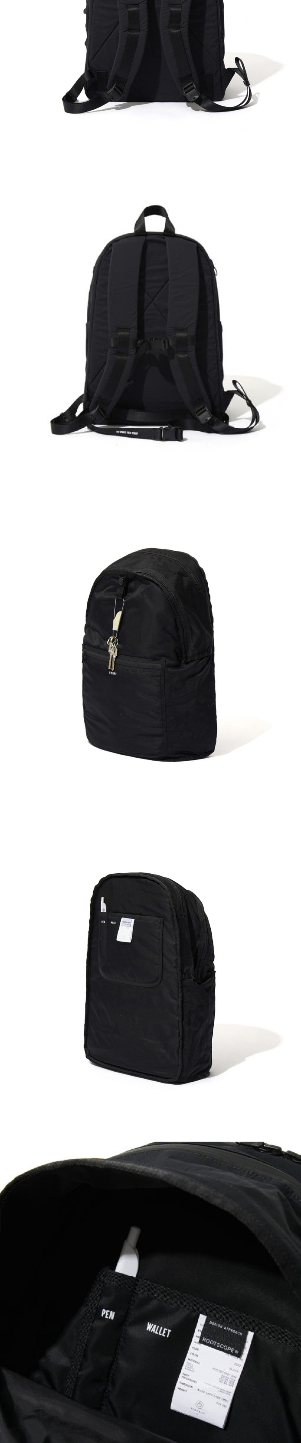 1일 치 용량의 수납이 가능하게 설계된 데이팩으로 내구성 및 유틸리티 기능을 강화하여 출시하였습니다. 랩톱 수납공간을 따로 분리하여 15인치 랩톱 PC도 여유롭게 보관할 수 있게 하였으며, 전면부 포켓은 목적에 따라 소지품 보관을 따로 분류할 수 있도록 양분화 하였습니다. 원단은 수년간 연구로 직접 개발하여 제작한 ROOTSCOPE® GIM 는 솔라 트윌 조직의 나일론 원단으로 바스락 거리는 터치감과 가볍지만 견고한 것이 특징입니다. DWR 가공과 래미네이팅 후가공된 3 Layer 원단 및 YKK® AquaGuard 지퍼를 사용하여 생활 발수 및 방수에 알맞게 제작되었습니다. * 가방이 무거워져도 견고함을 더해주는 체스트 스트랩과 싱글 웹 스트랩 제품과 같이 사용할 수 있습니다. (별도 구매)