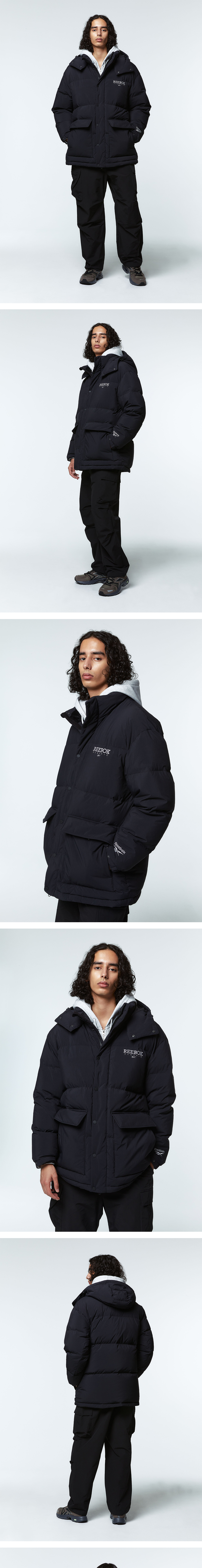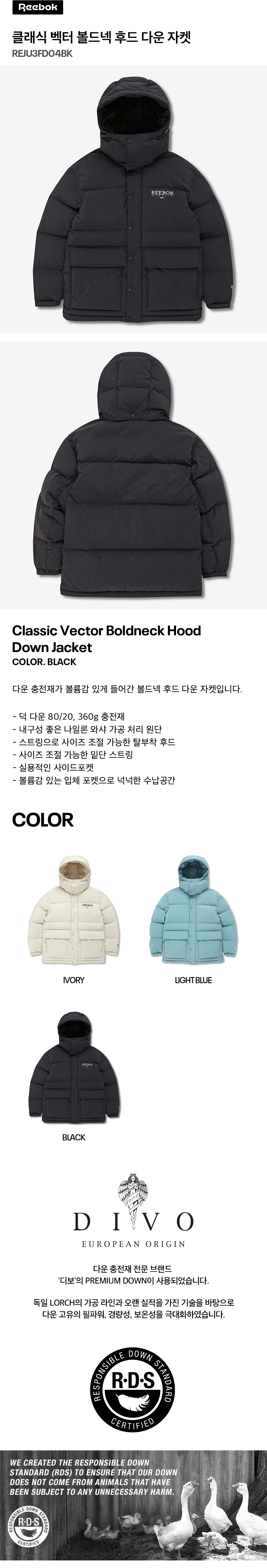 리복 클래식 벡터 볼드넥 후드 다운 자켓 블랙