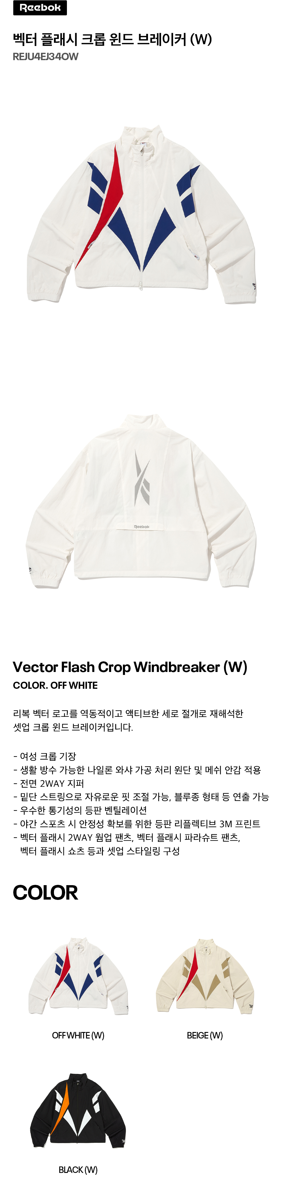 리복 벡터 플래시 크롭 윈드 브레이커 W 오프 화이트