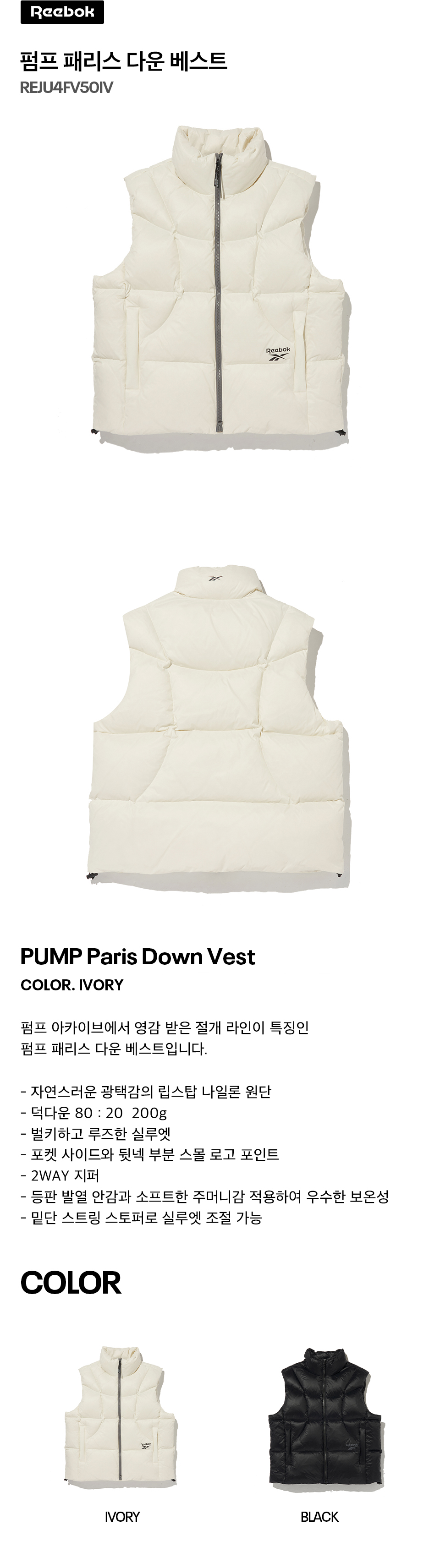 리복 펌프 패리스 다운 베스트 아이보리