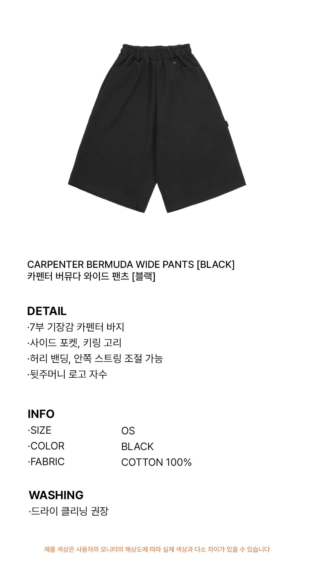 슬로우 레코드 하우스 카펜터 버뮤다 와이드 팬츠 블랙