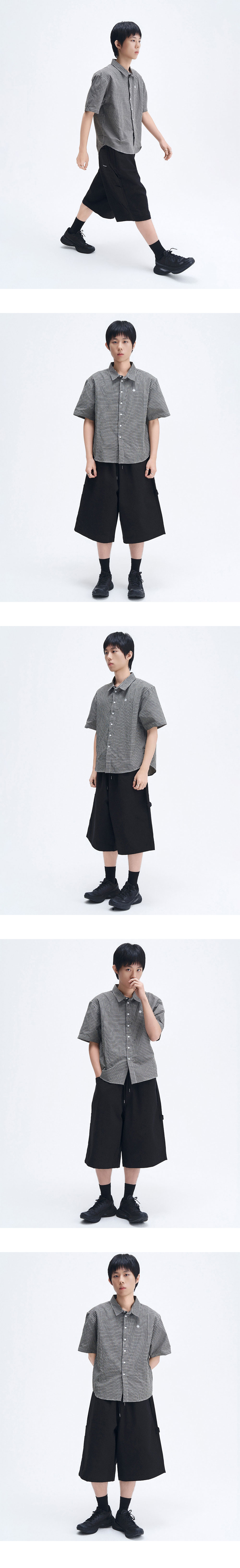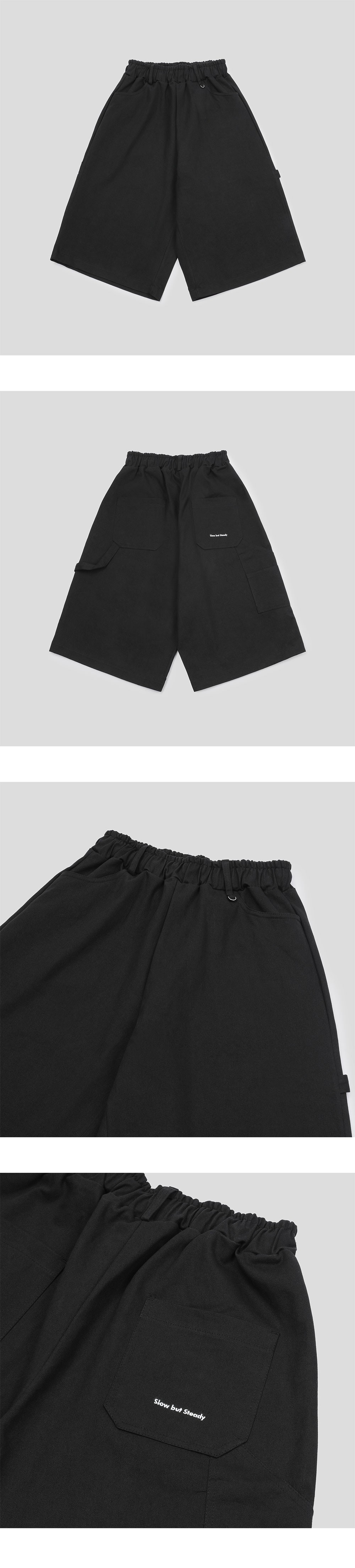 SLOW RECORD HOUSE Carpenter Bermuda Wide Pants Black