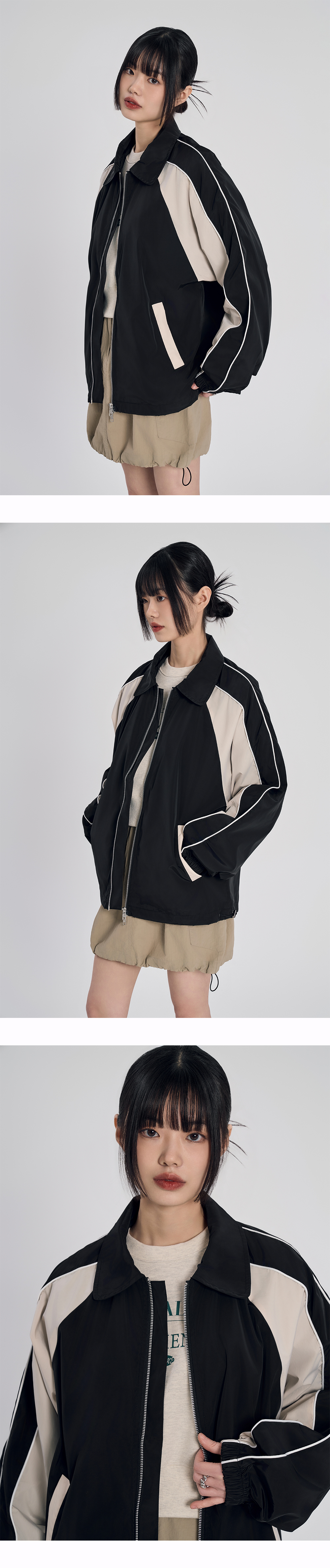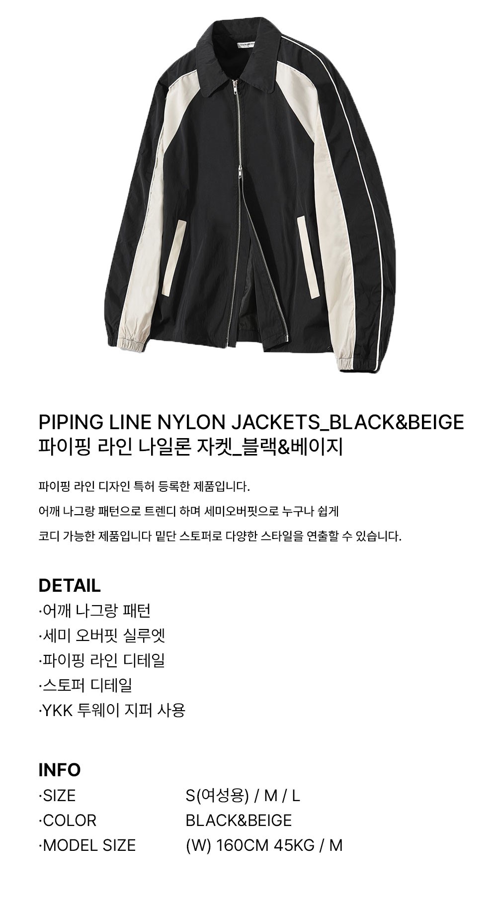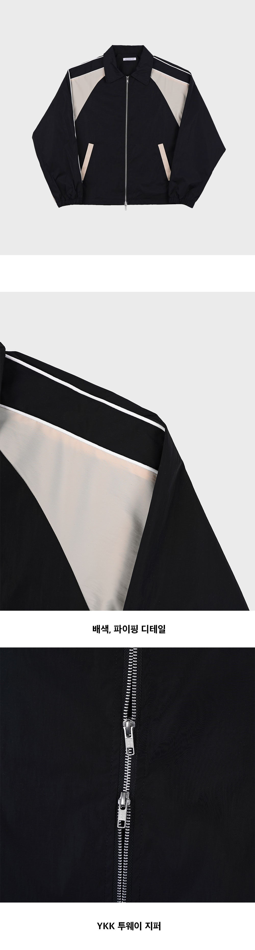 슬로우 레코드 하우스 파이핑 라인 윈드브레이커 블랙 & 베이지
