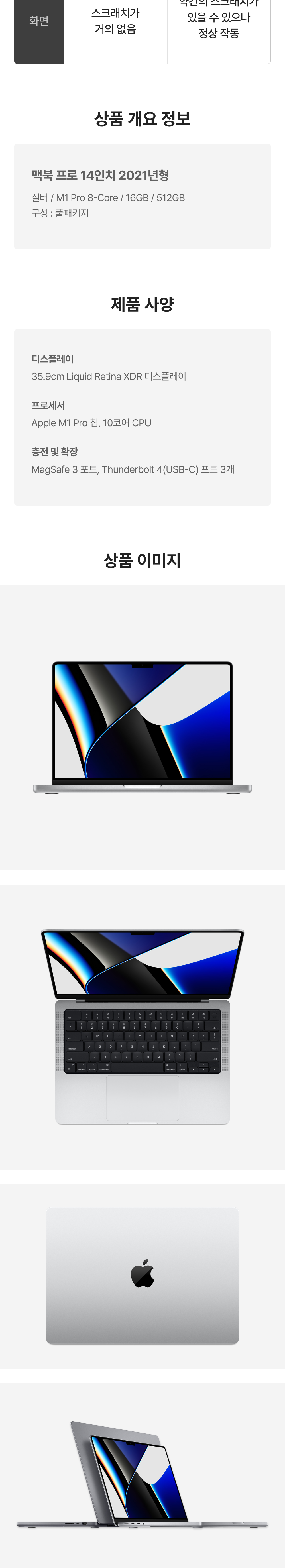 [S등급] 리퍼비시 2021 맥북 프로 14 M1 Pro 8c 512기가 SSD 16기가 램 실버