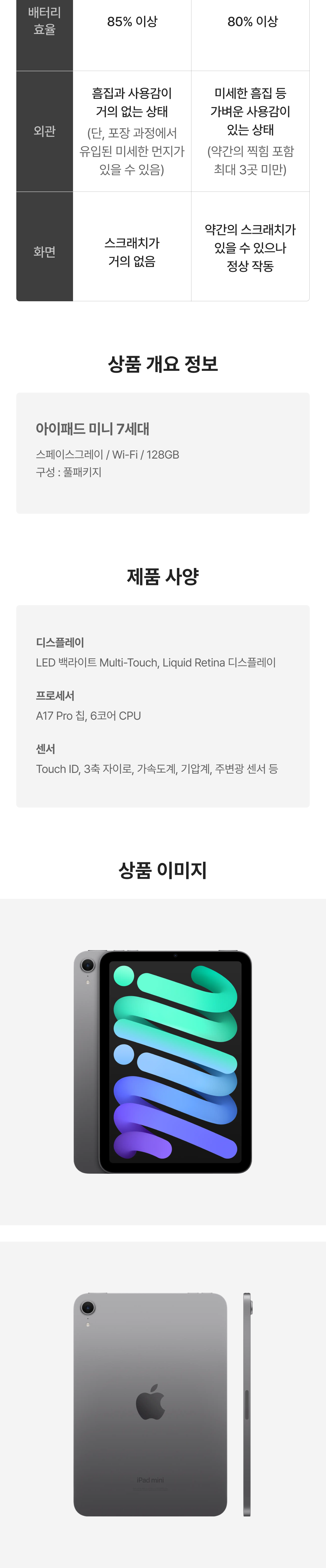 [S등급] 리퍼비시 아이패드 미니 7세대 wifi A17 Pro 128기가 스페이스그레이