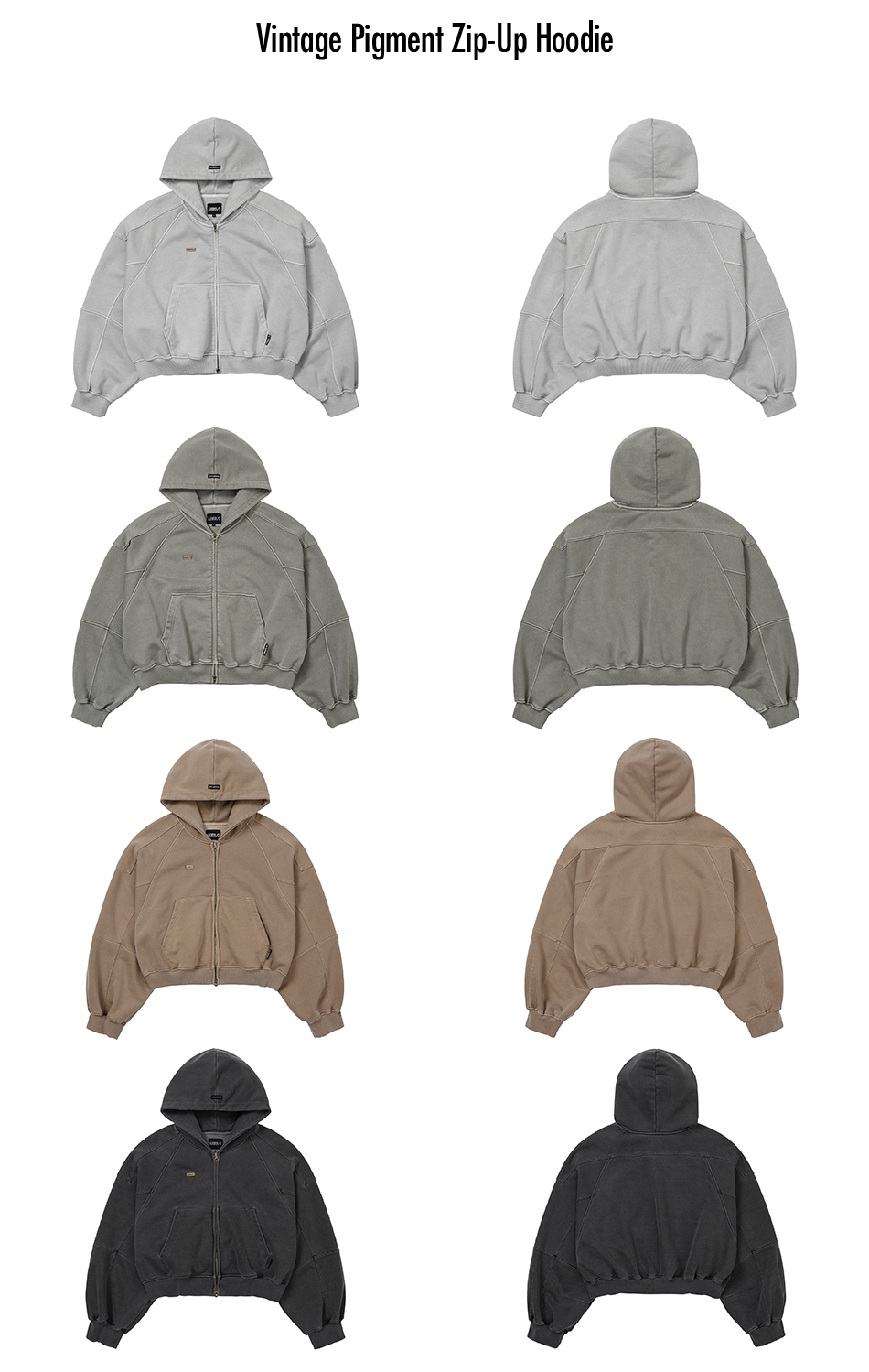 아조바이아조 빈티지 피그먼트 집업 후디 라이트 그레이