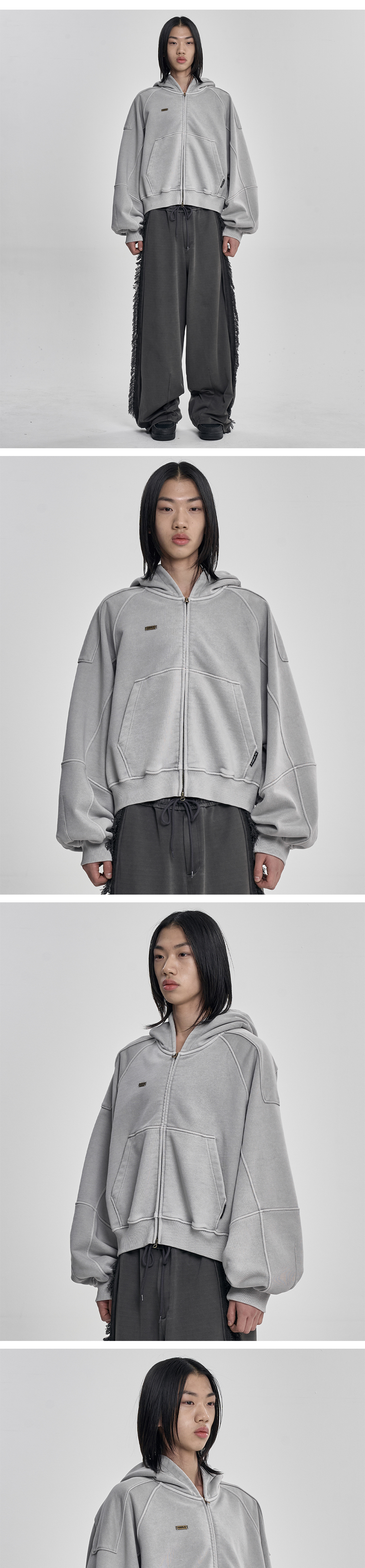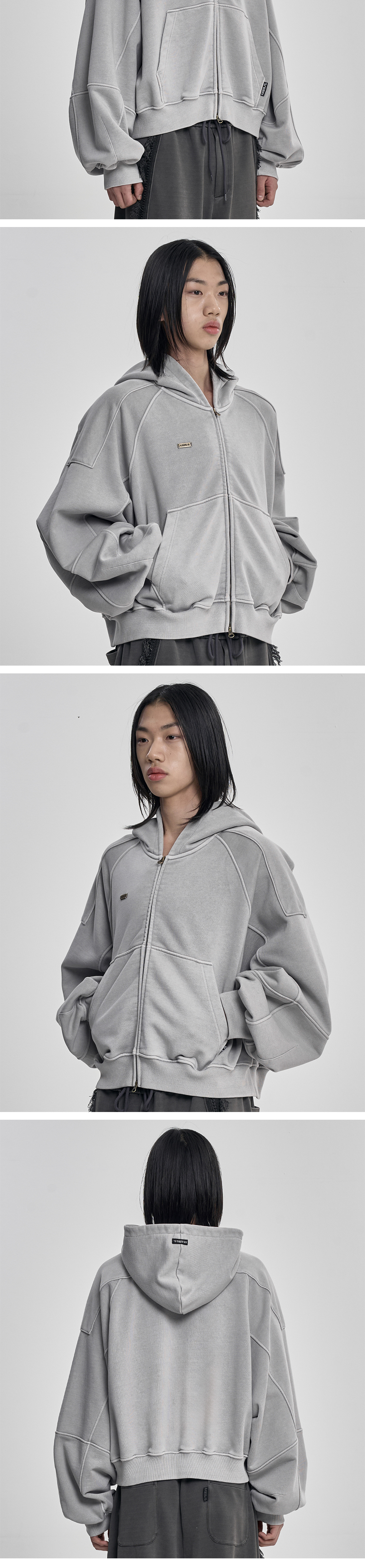 AJOBYAJO Vintage Pigment Zip-Up Hoodie Light Grey