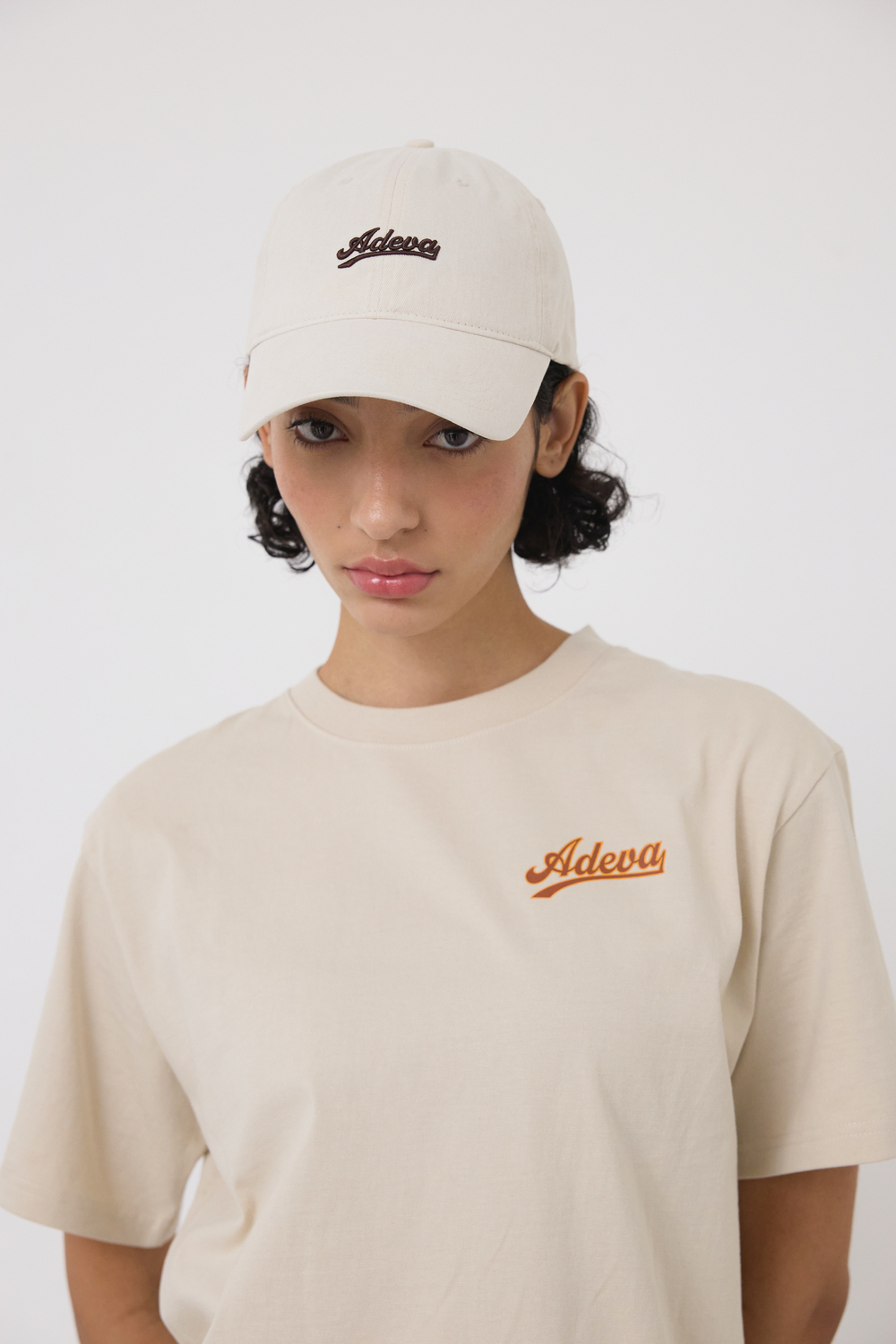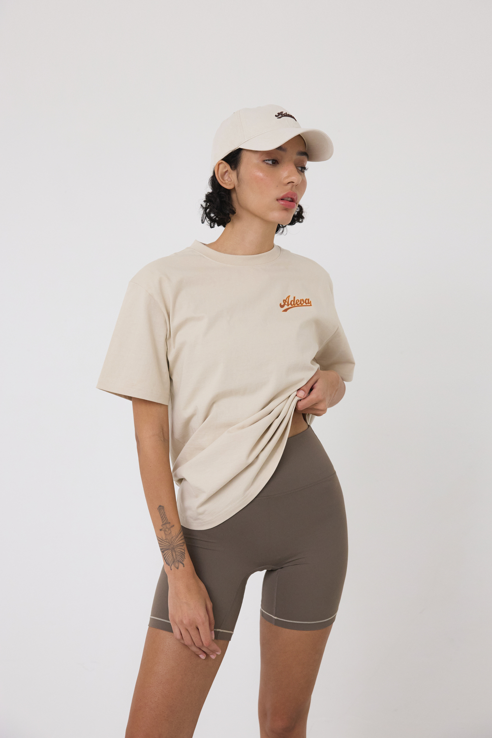 · 100% Cotton · 베이지컬러 티셔츠 · 편안함을 위해 제작된 여유로운 착용 핏 · 아데바의 감각적인 디자인 로고 프린팅 · 움직임 속에서도 안정적인 착용감 · 모든 계절에 다재다능하고 일상적인 스타일링 가능 · 남여공용 착용 가능 * 여자는 S 사이즈, 남자는 M 사이즈를 권장합니다. 모델 착용 사이즈 S / 모델 스펙 176cm