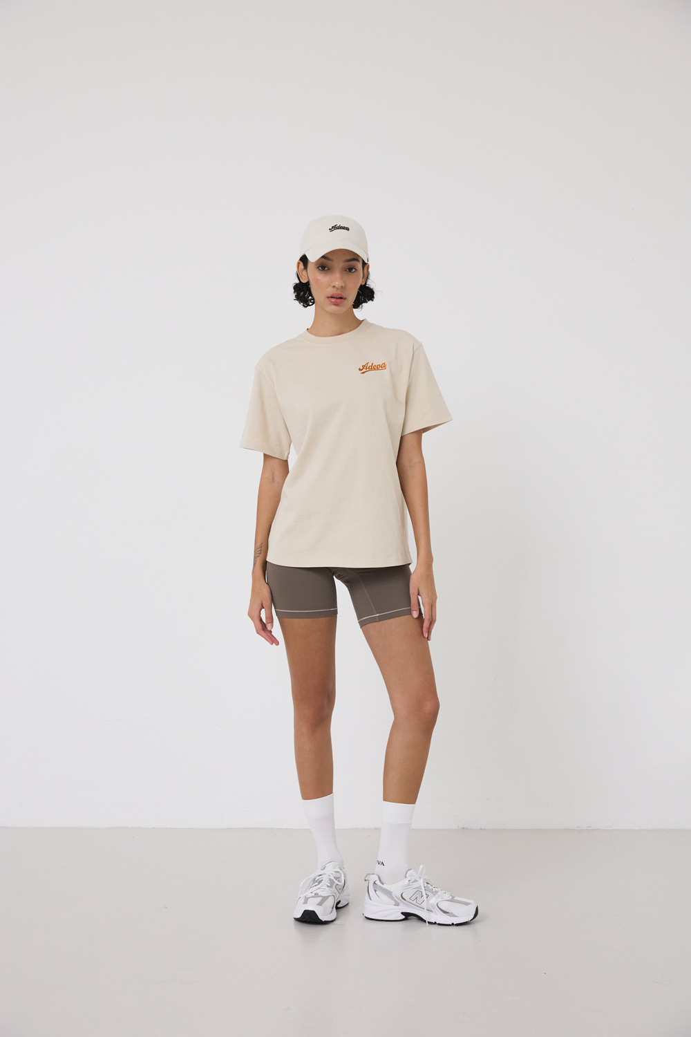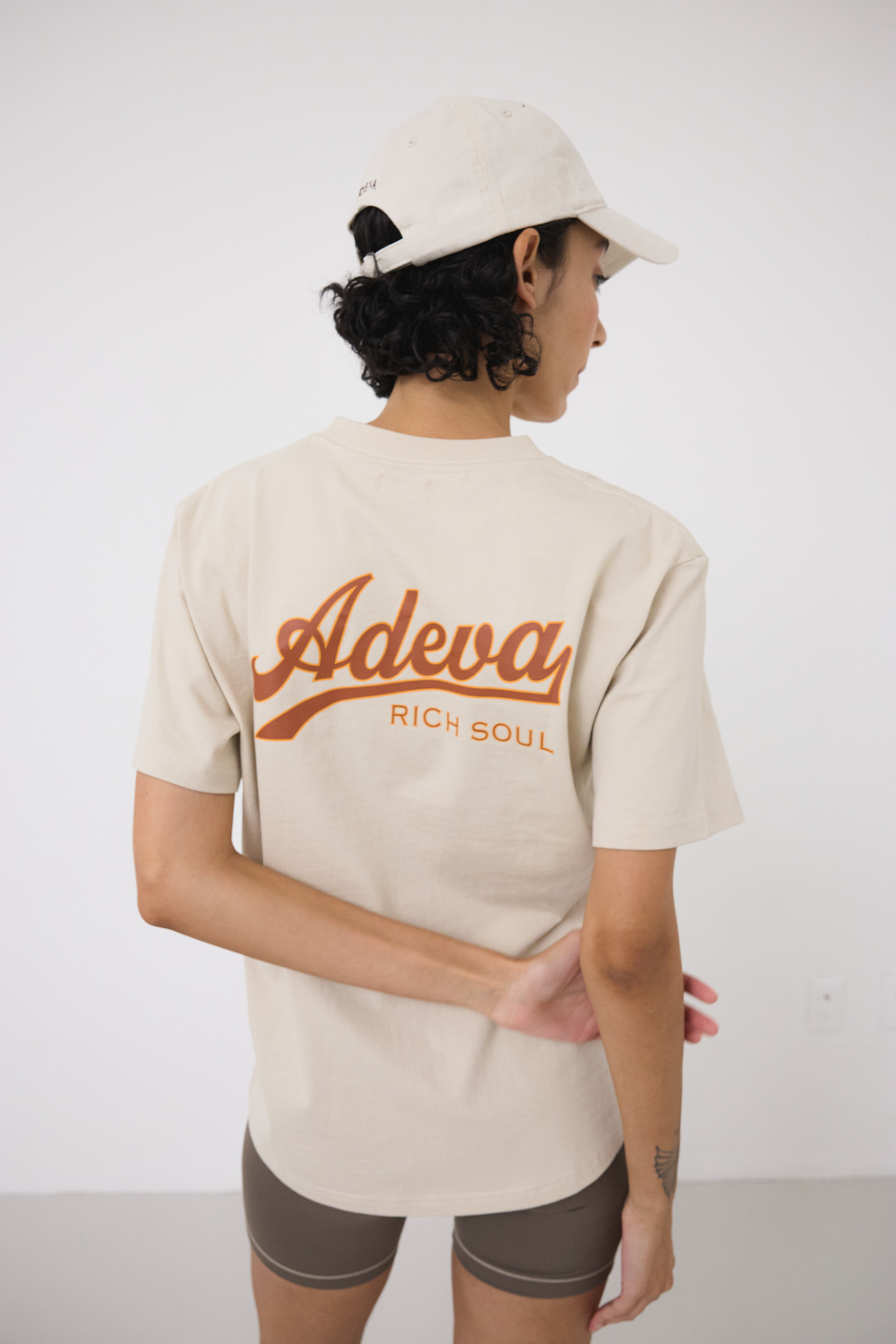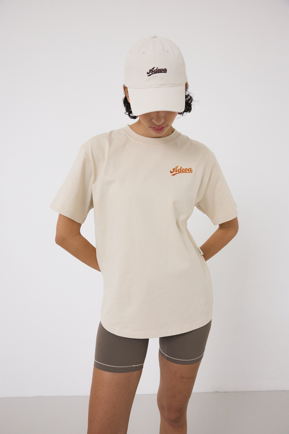 · 100% Cotton · 베이지컬러 티셔츠 · 편안함을 위해 제작된 여유로운 착용 핏 · 아데바의 감각적인 디자인 로고 프린팅 · 움직임 속에서도 안정적인 착용감 · 모든 계절에 다재다능하고 일상적인 스타일링 가능 · 남여공용 착용 가능 * 여자는 S 사이즈, 남자는 M 사이즈를 권장합니다. 모델 착용 사이즈 S / 모델 스펙 176cm