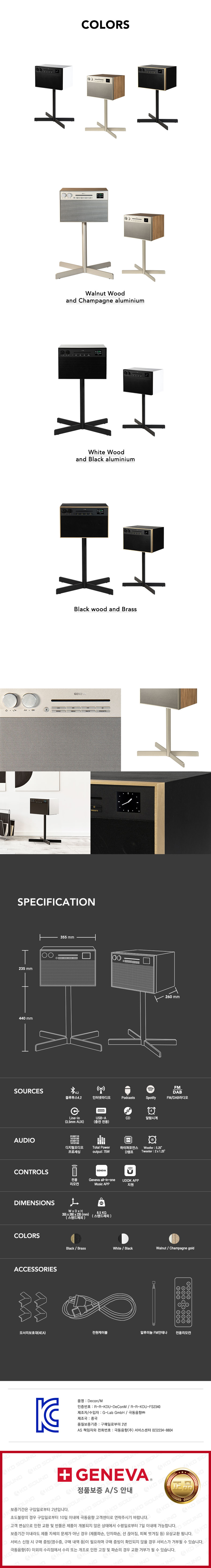 블루투스 / 인터넷라디오&팟캐스트&Spotify 지원 / FM&DAB라디오 지원 / CD재생 / 스탠드 기본구성