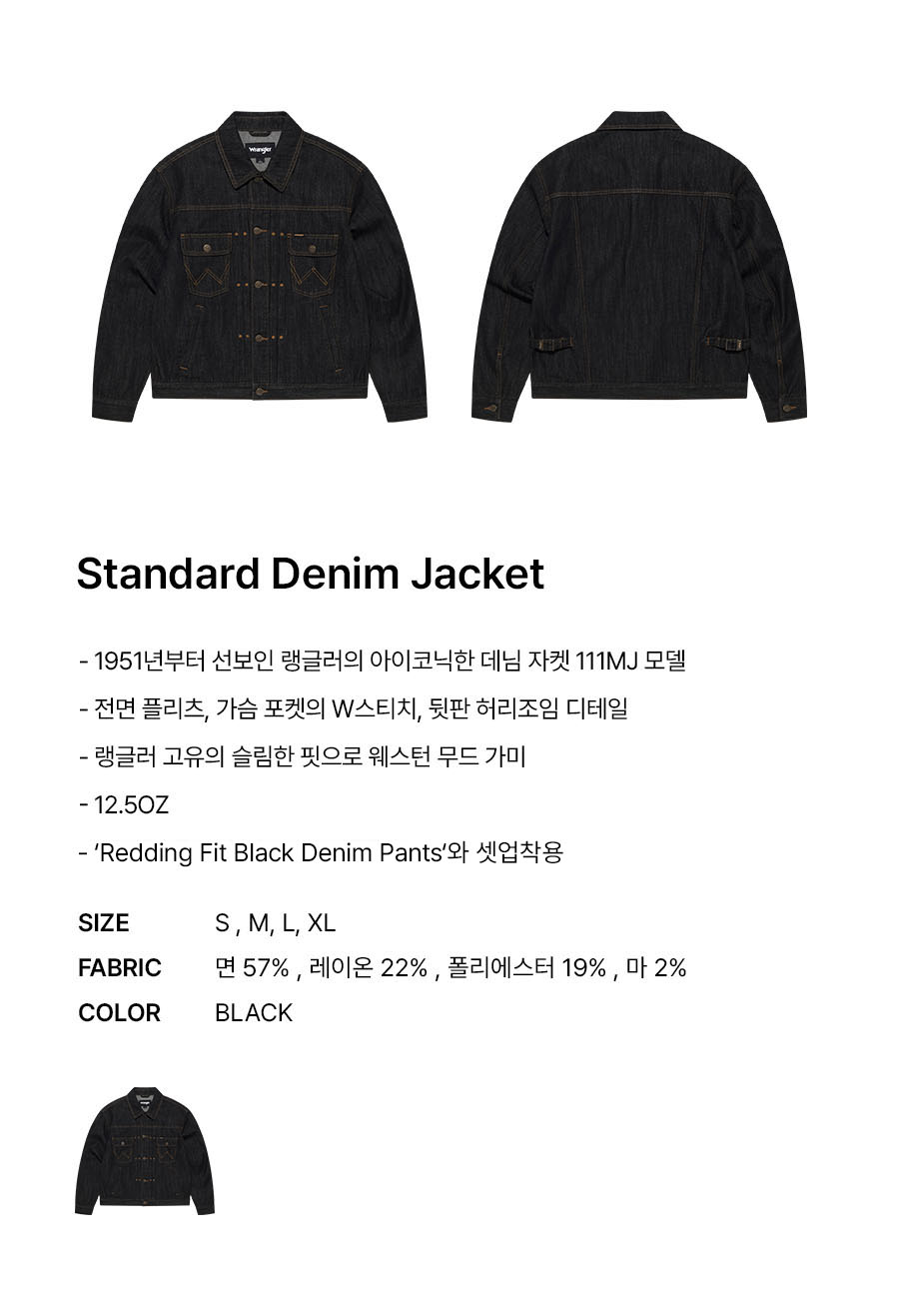 랭글러 스탠다드 데님 자켓 111MJ 블랙